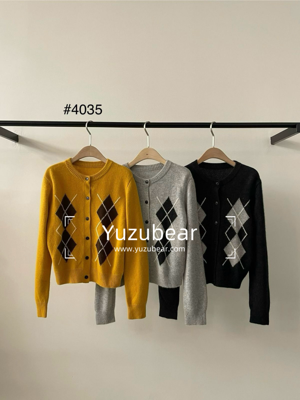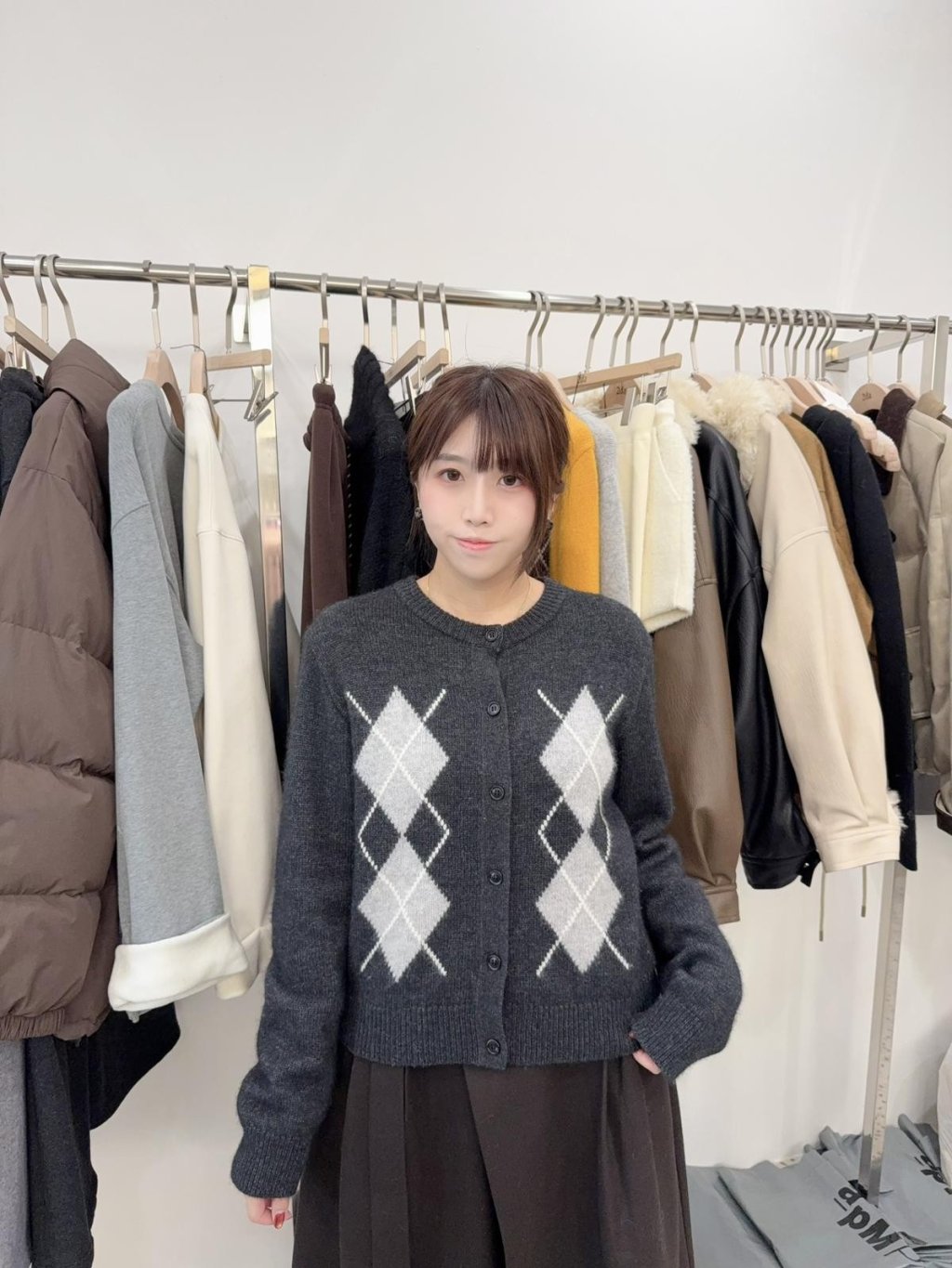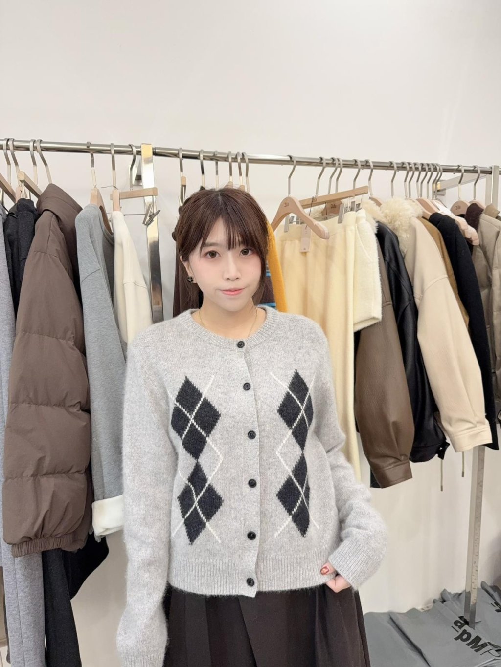 ad16 韓國高質菱格浣熊毛40% &羊毛30% 冷cardigan