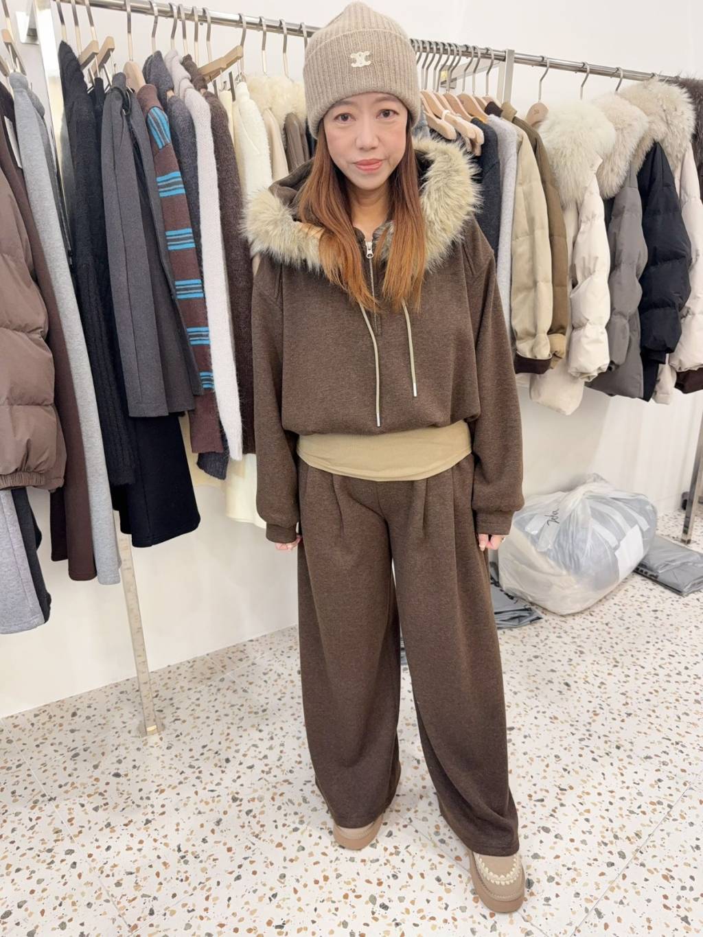 主頁 ad22 韓國高質毛毛領上衣+休閑褲套裝