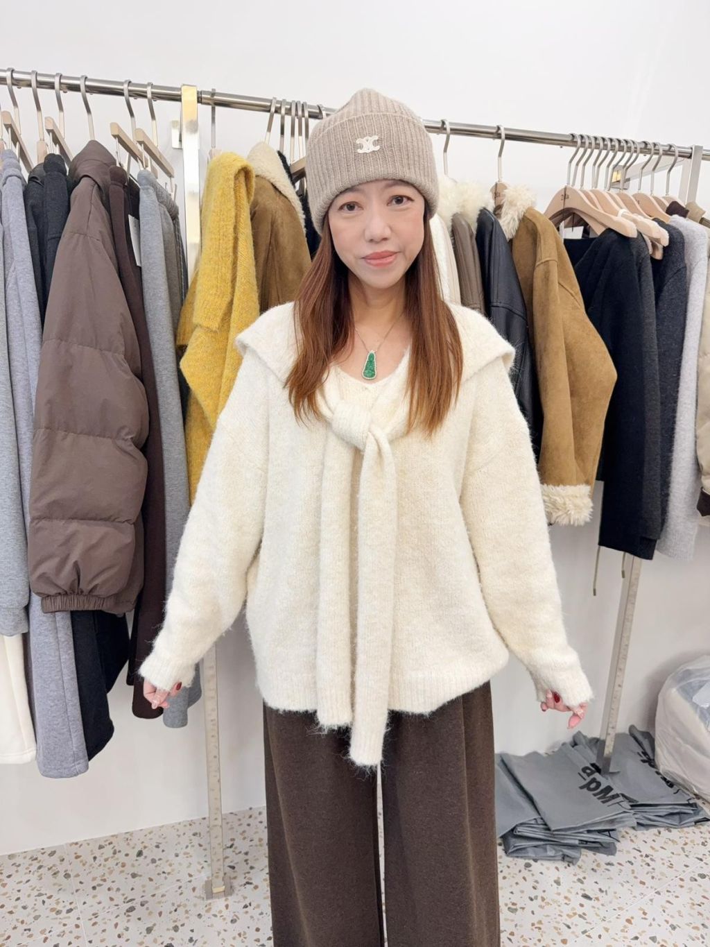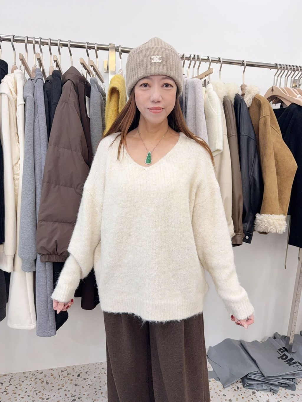 ad34 韓國高質V領30%羊毛冷衫+披肩套裝