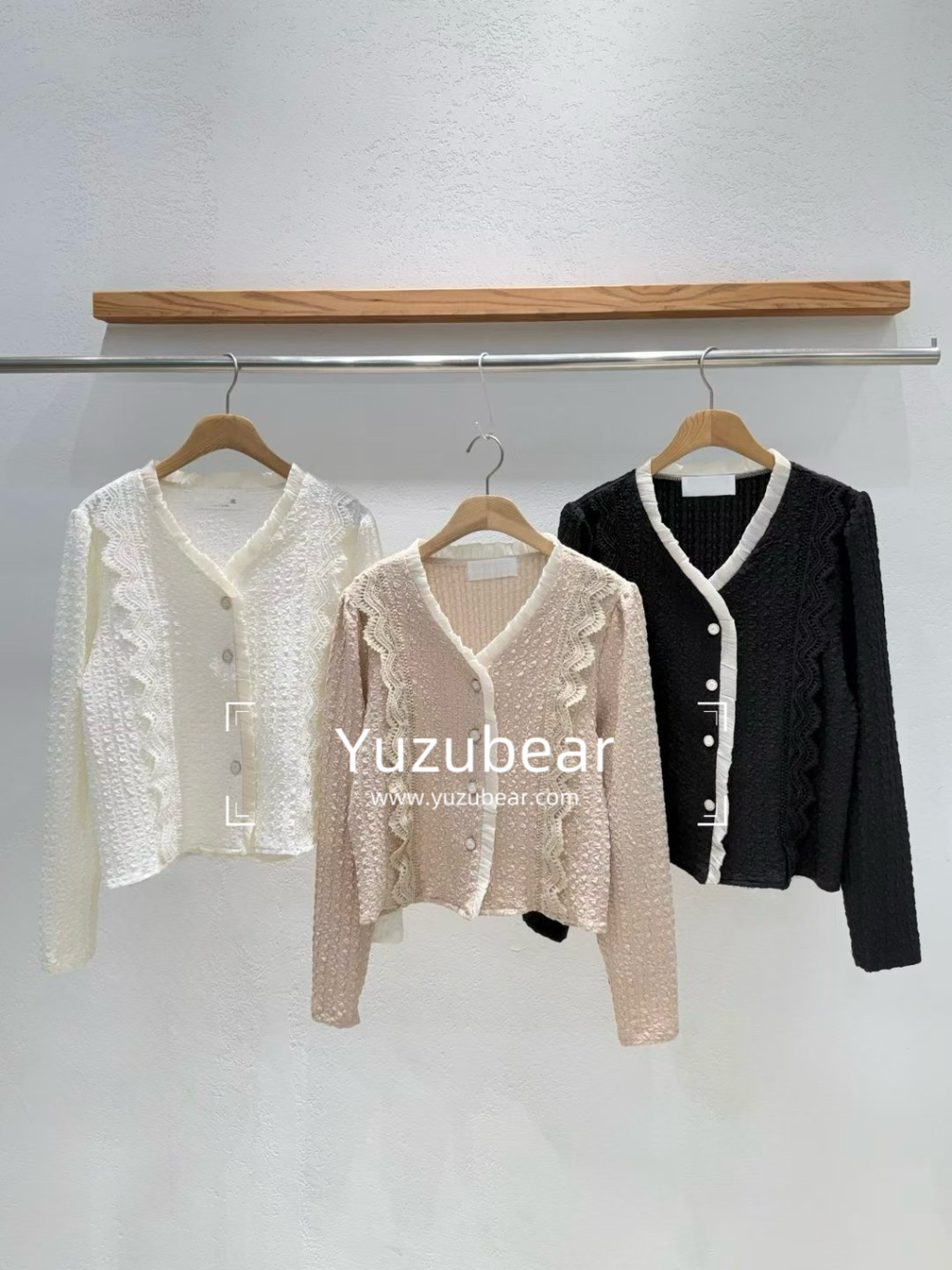 IA7 韓國高質拼花邊冷衫外套