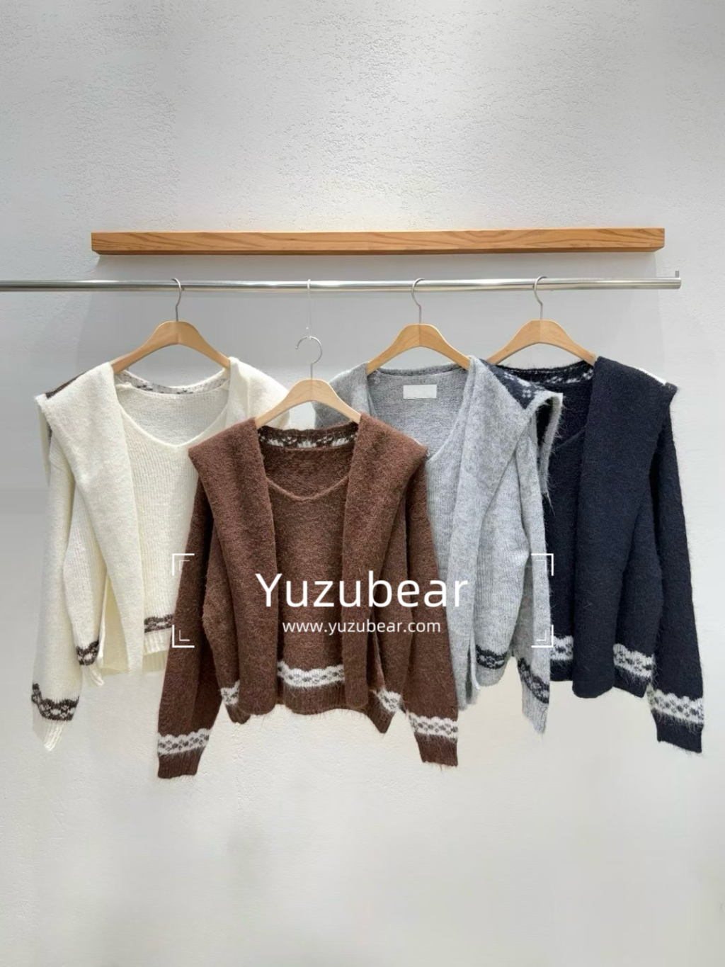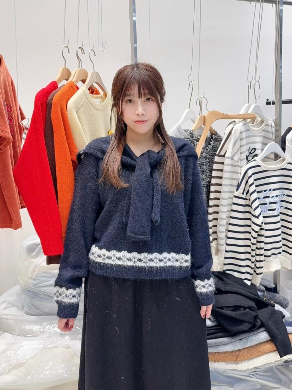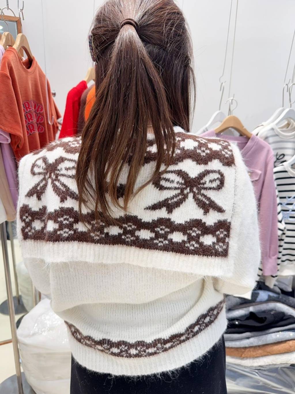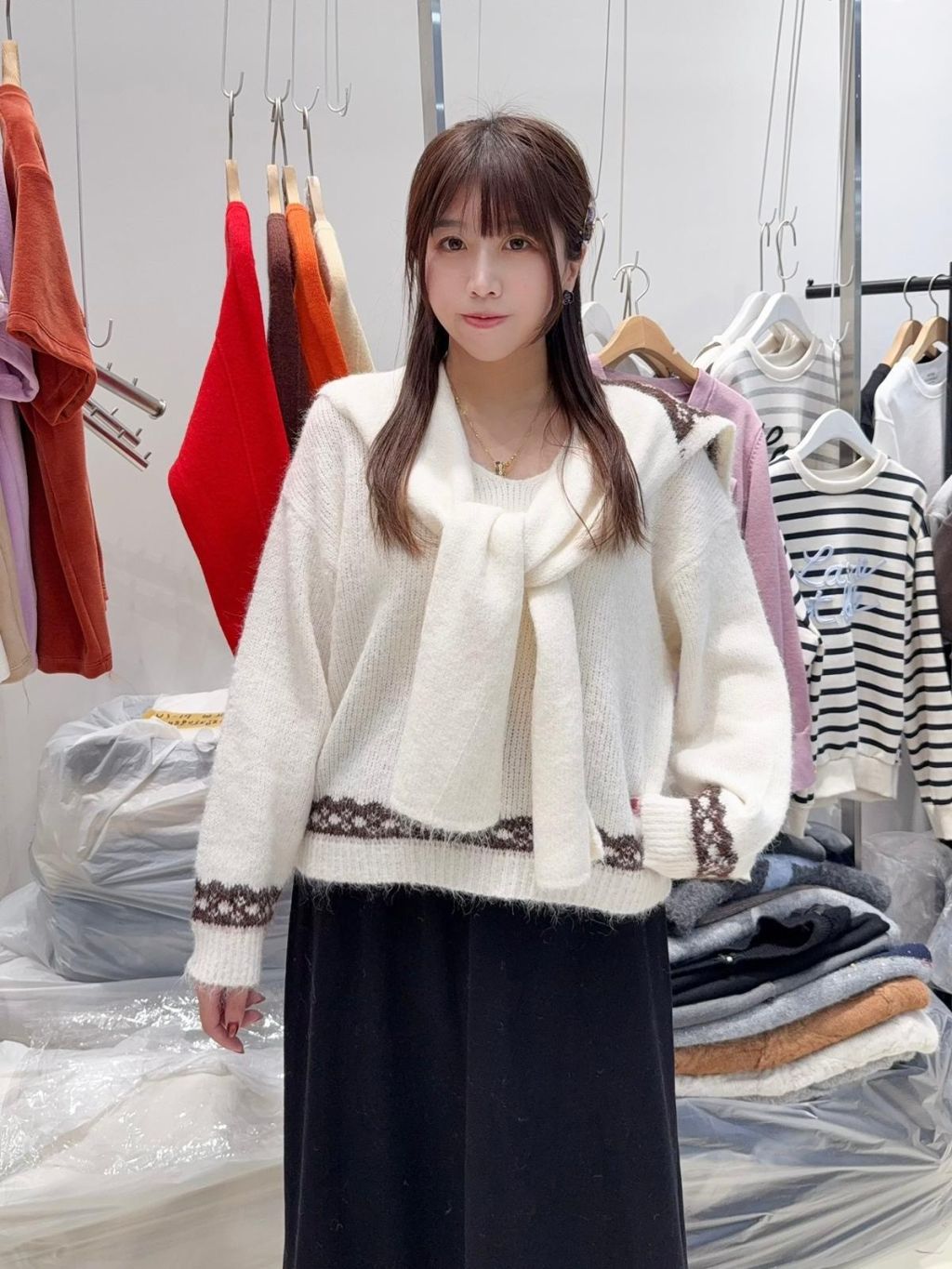 IA21 韓國高質織花蝴蝶V領冷衫(附圍巾)