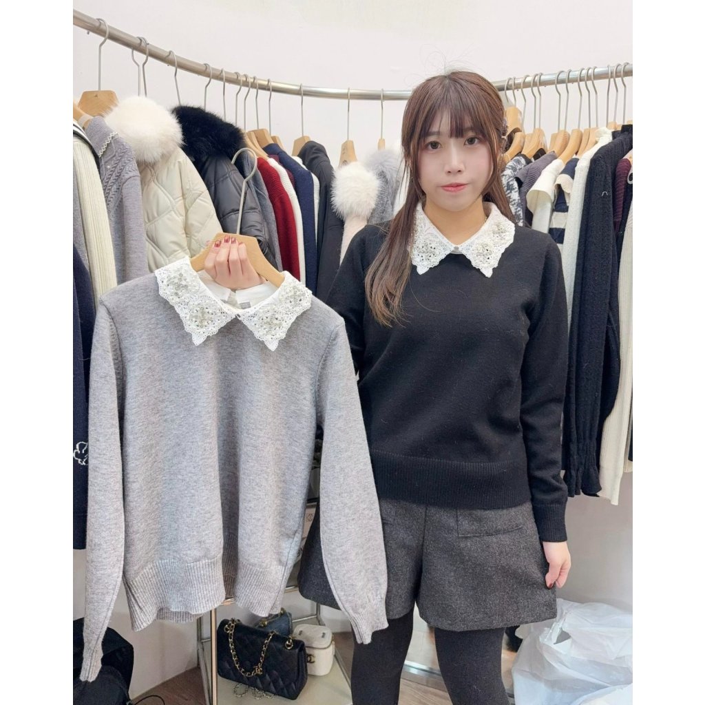 AS15 韓國高質Lace領冷衫上衣
