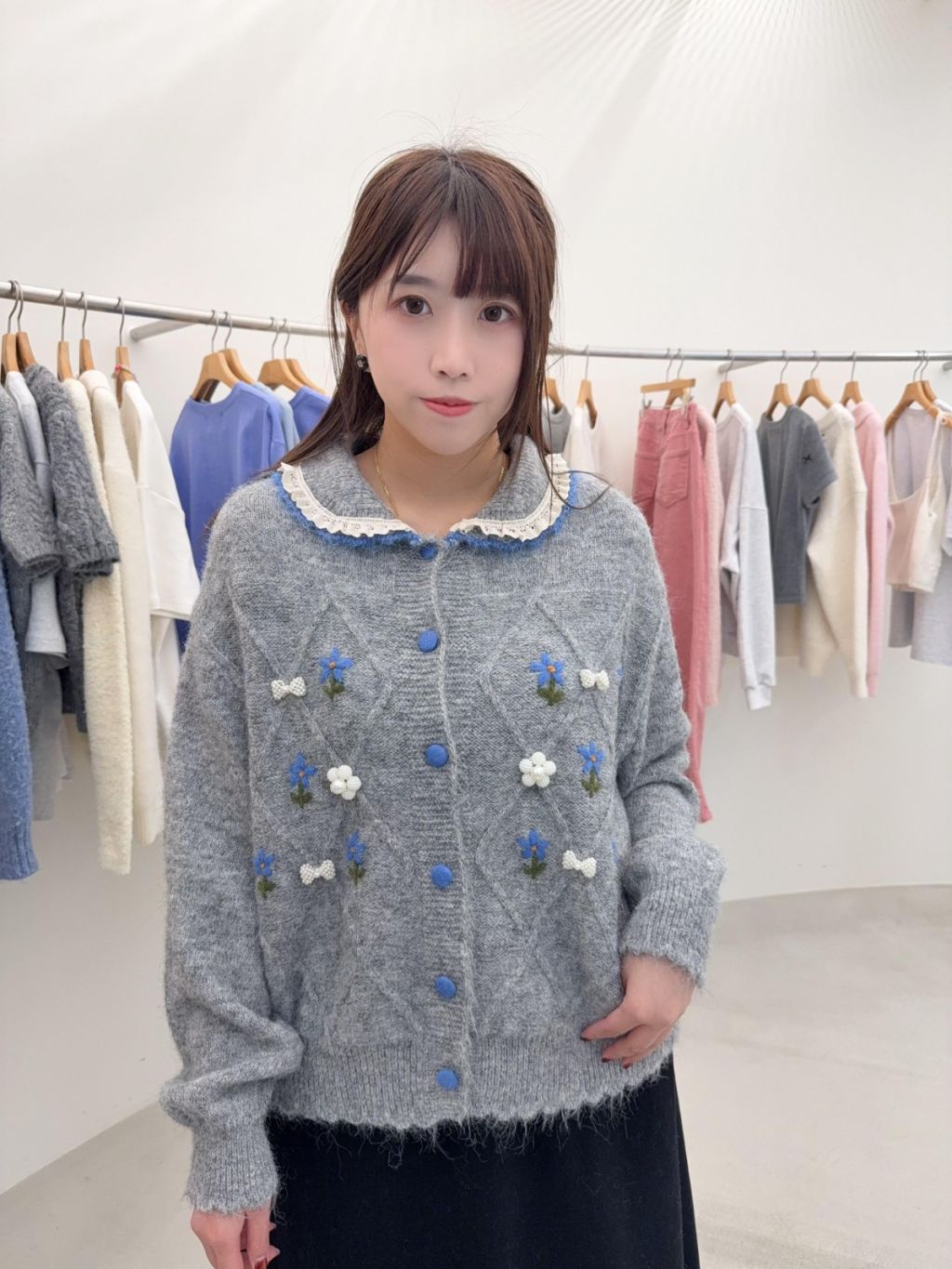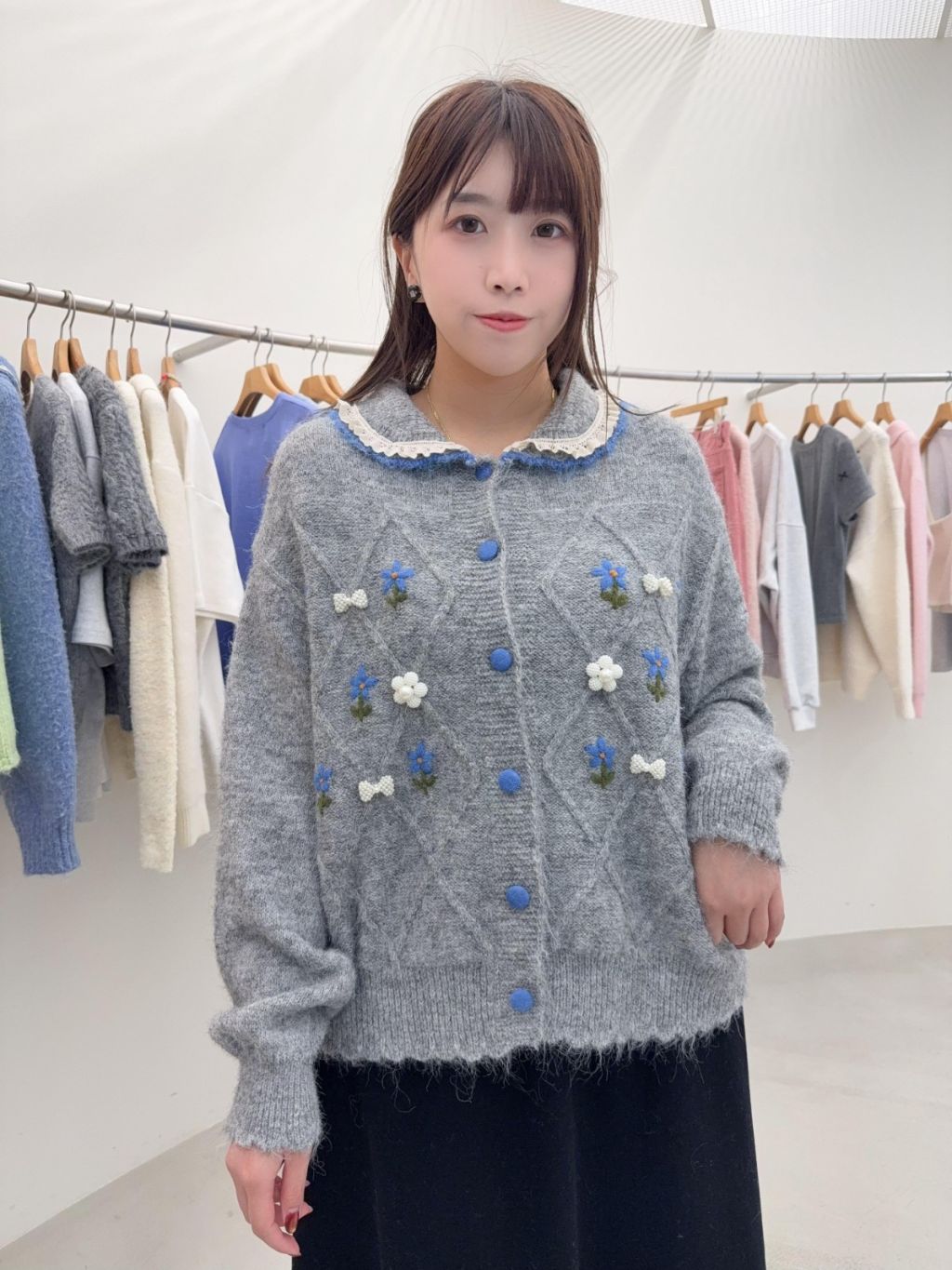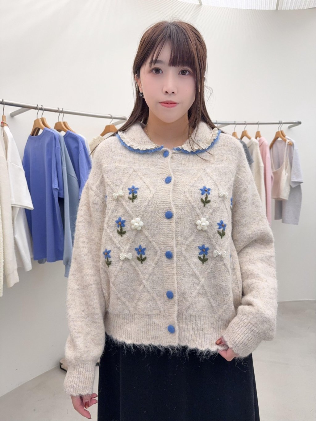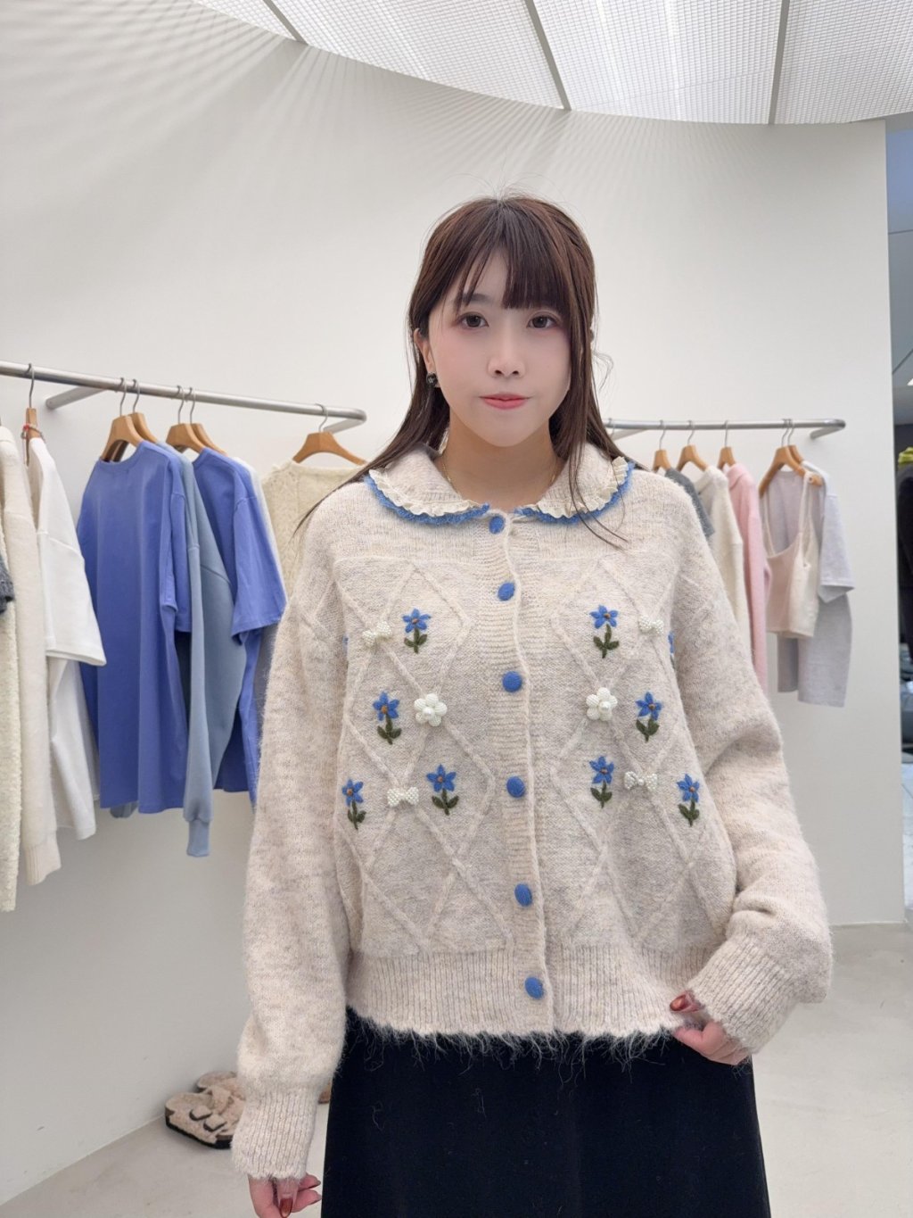 RE9 韓國高質手工刺繡花花菱格紋外套