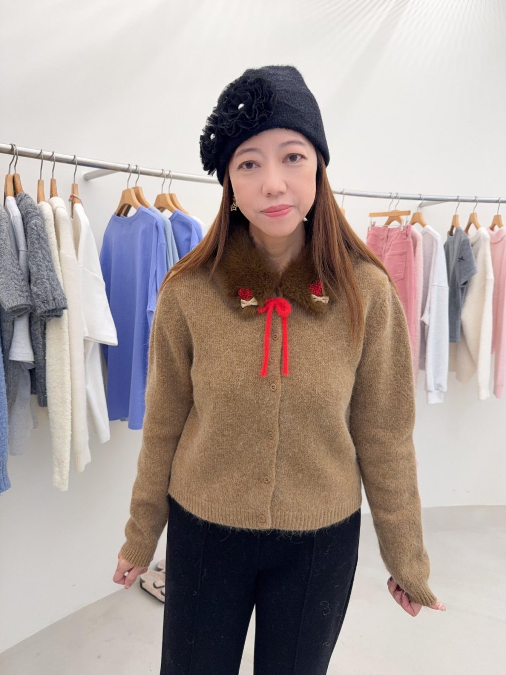 RE29 韓國高質毛毛領心心冷衫