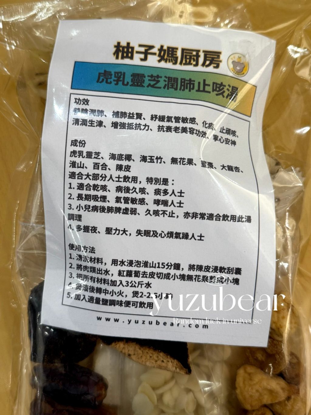 yk138 柚子媽厨房 - 湯包 虎乳靈芝潤肺止咳湯