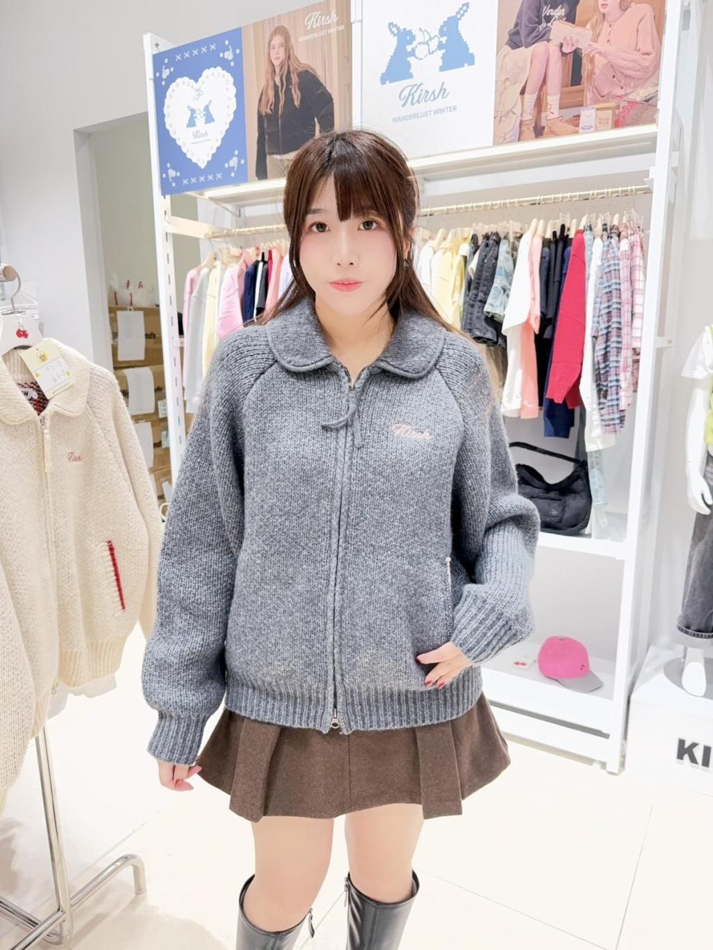 主頁 ks17 韓國潮牌kirsh🍒11%羊毛反領拉鏈外套背有蝴蝶織花