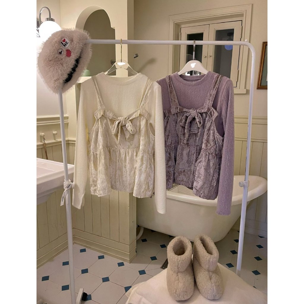 KJ7 韓國高質絲絨吊帶背心+混羊毛毛絨上衣套裝