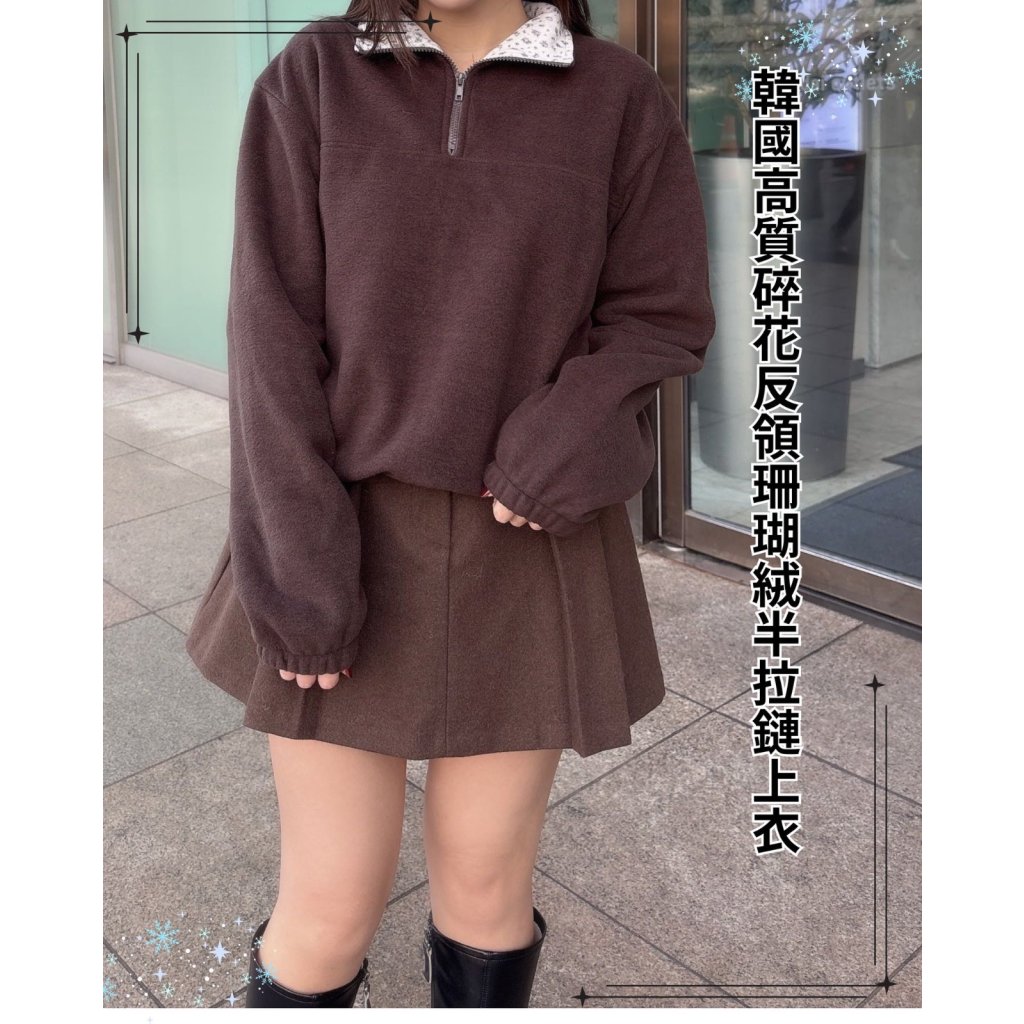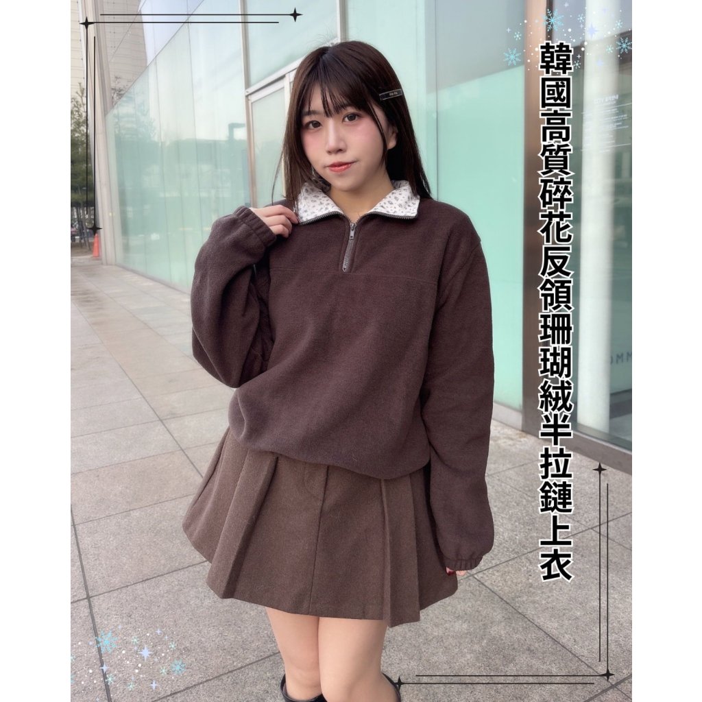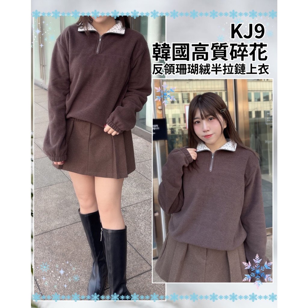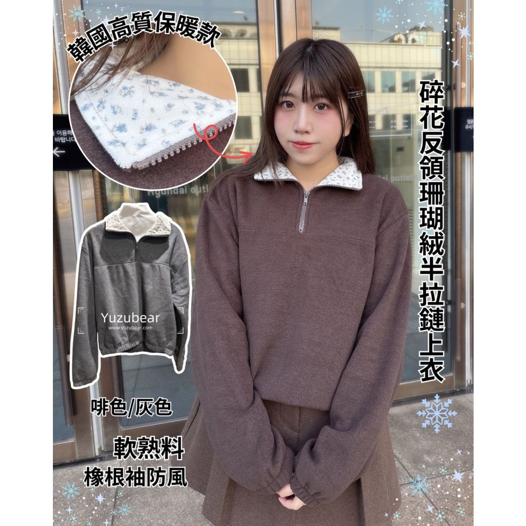主頁 KJ9 韓國高質碎花反領珊瑚絨半拉鏈上衣💖一口優惠價(現貨)