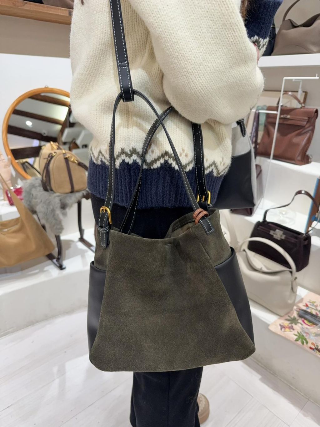 DG5 韓國高質真皮手袋猄皮拼布手提袋