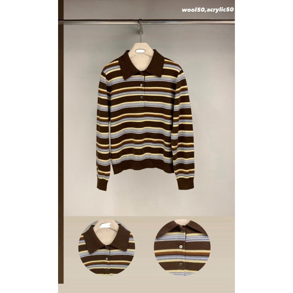 NE29 韓國高質間條polo上衣 ( 50% WOOL )