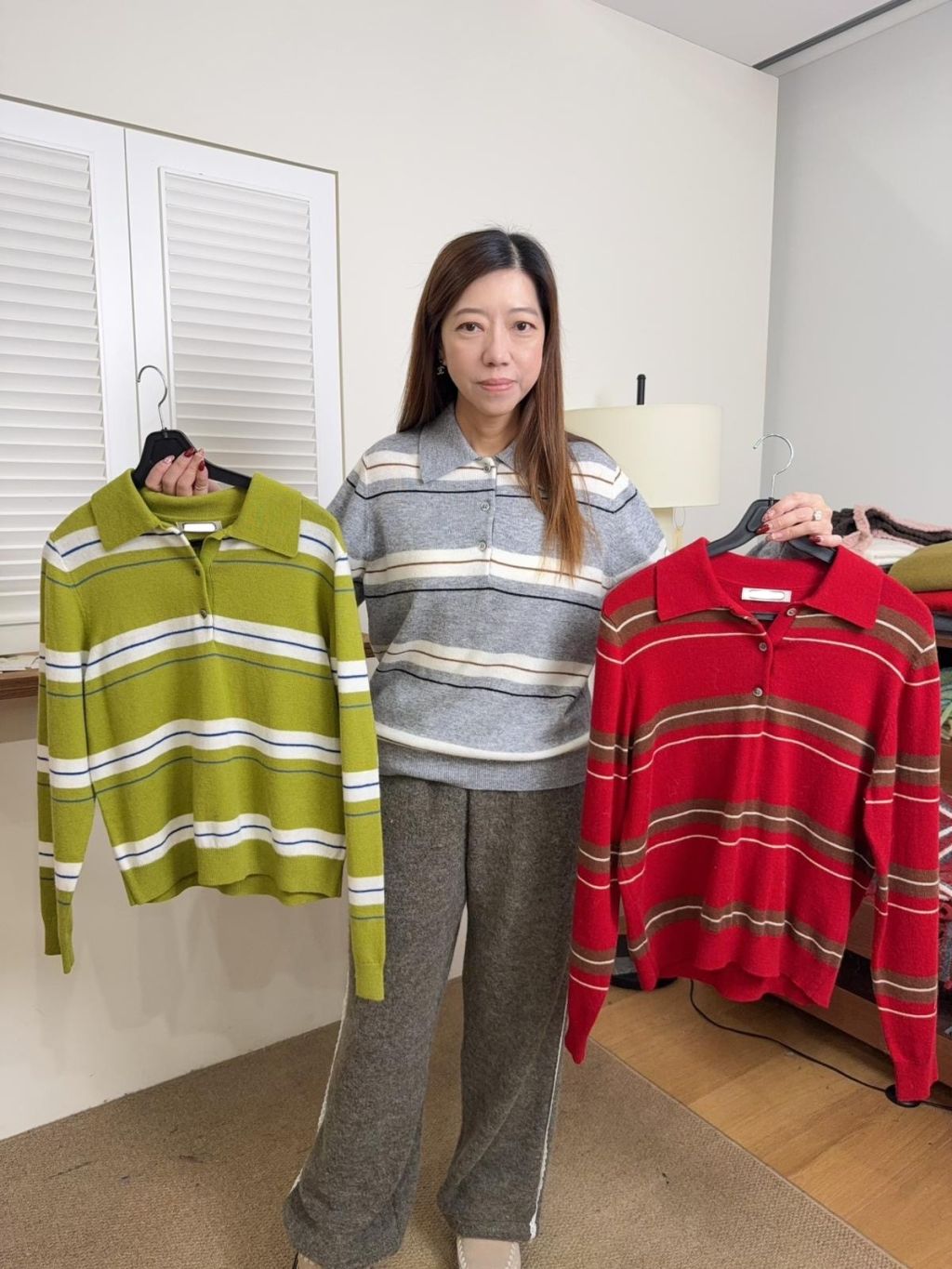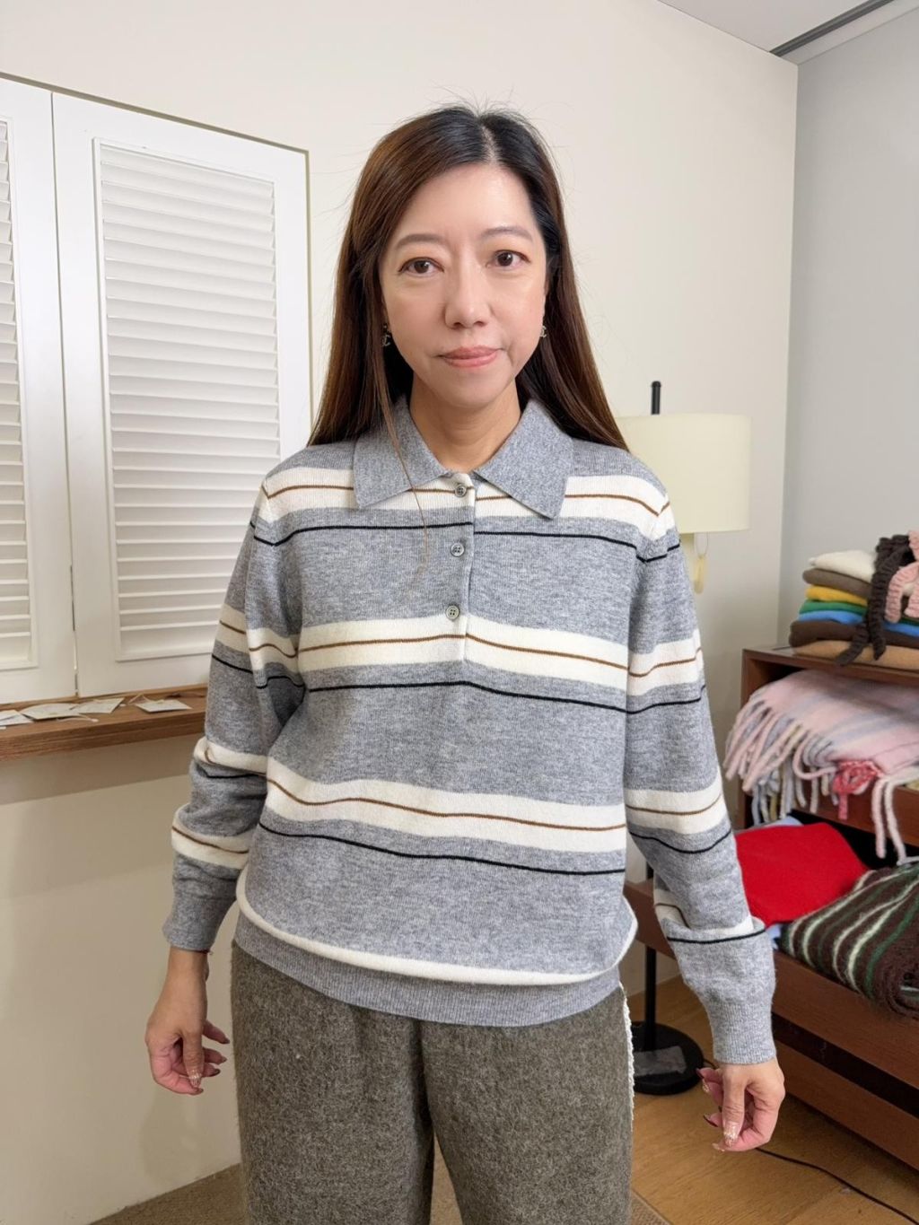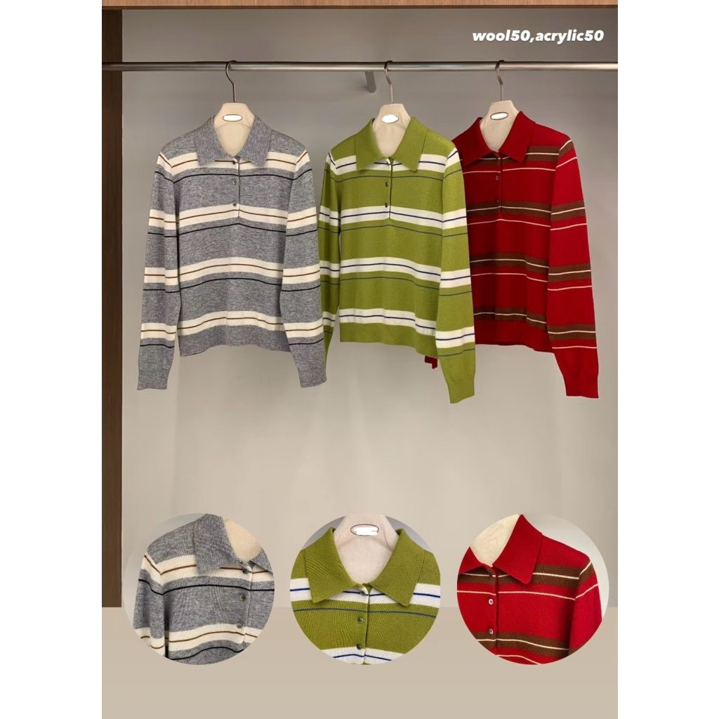 ne28 韓國高質橫紋拼色polo冷衫 羊毛50%
