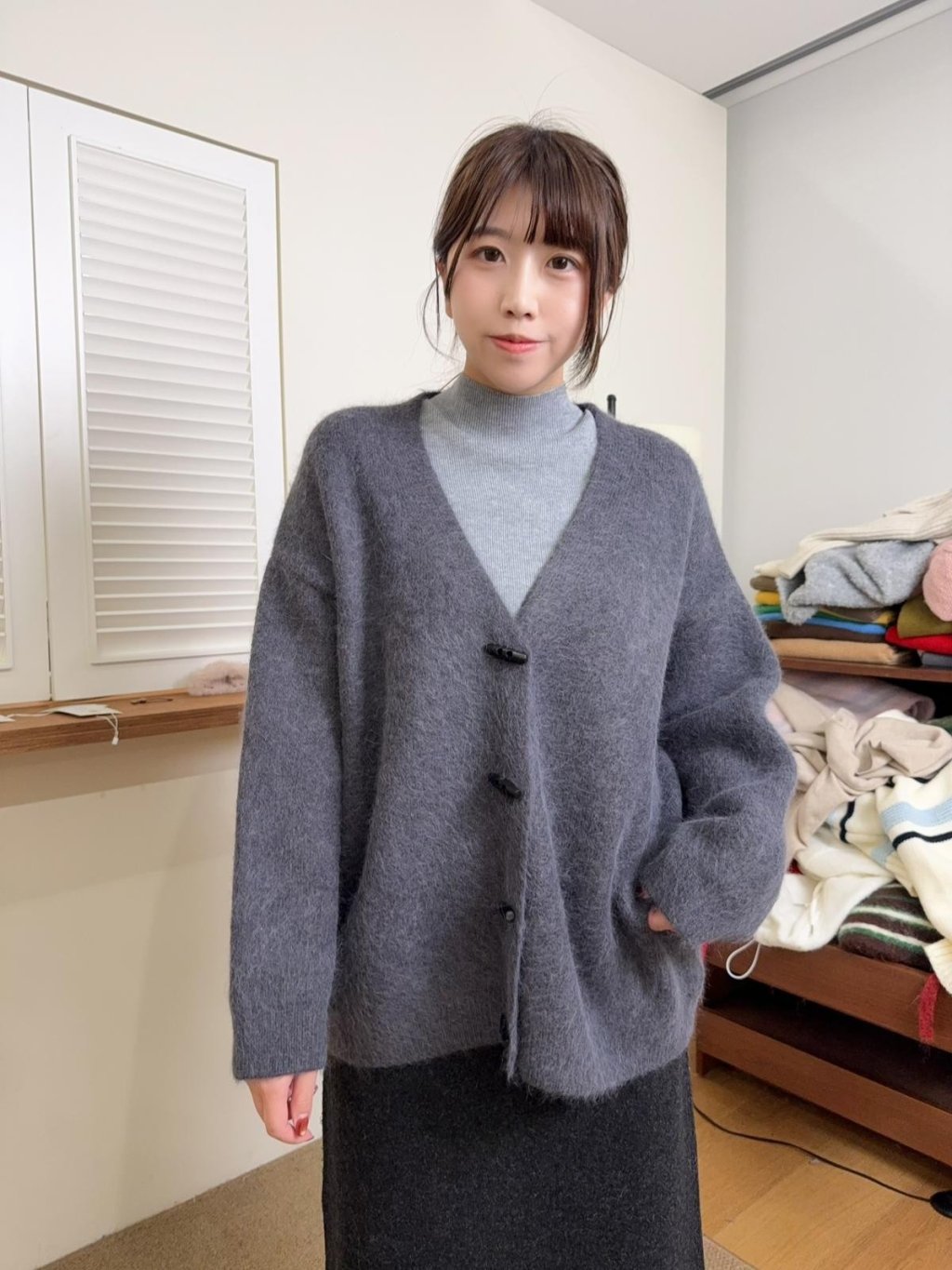 NE12 高質開胸牛角鈕冷外套( 10% 免毛 )