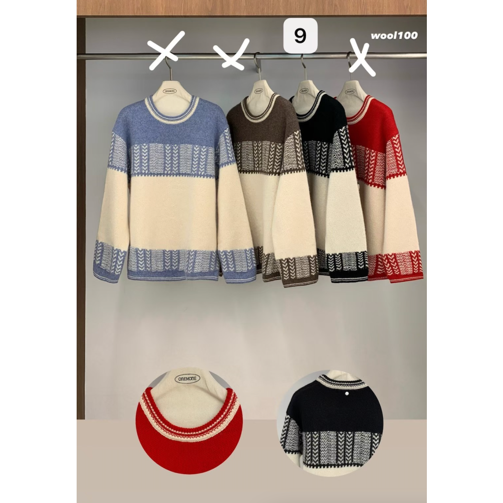 ne26 韓國高質拼織花冷衫 100%羊毛