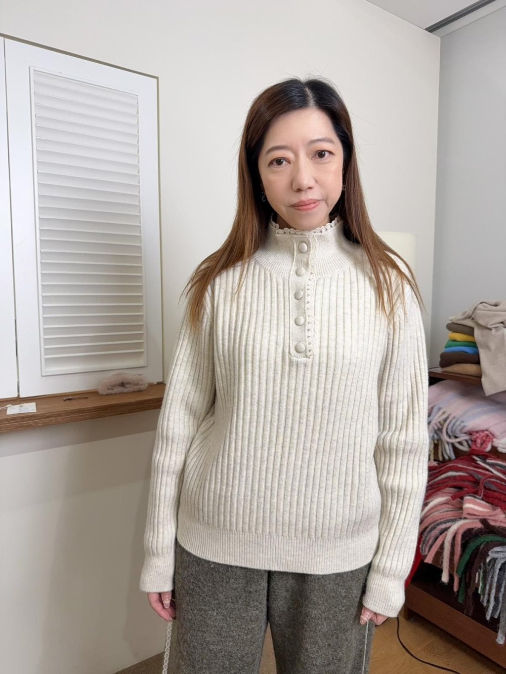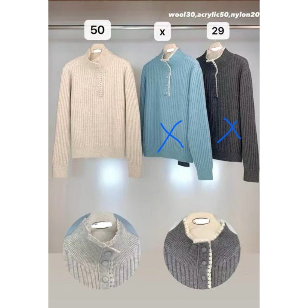 NE13 高質LACE邊半開胸冷衫 ( 30%羊毛)