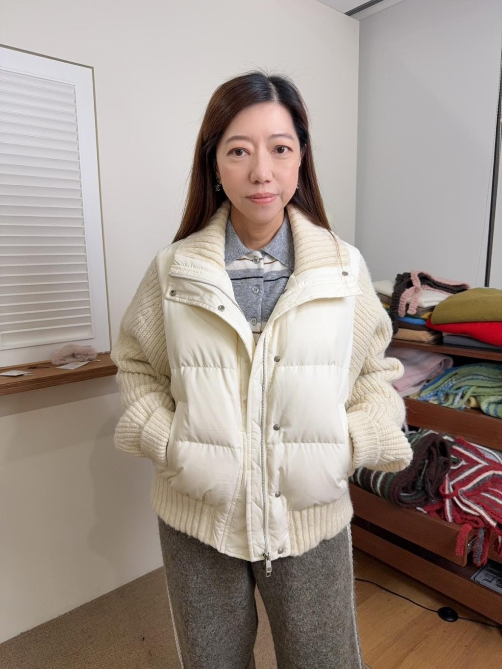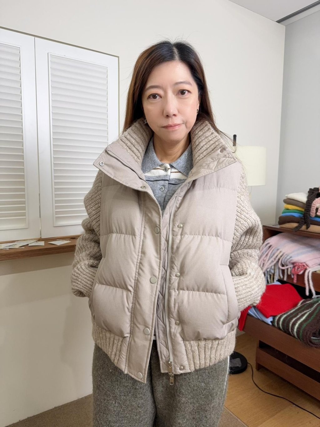 ne34 韓國高質冷拼羽絨外套 (羊毛100%,鴨絨90%)