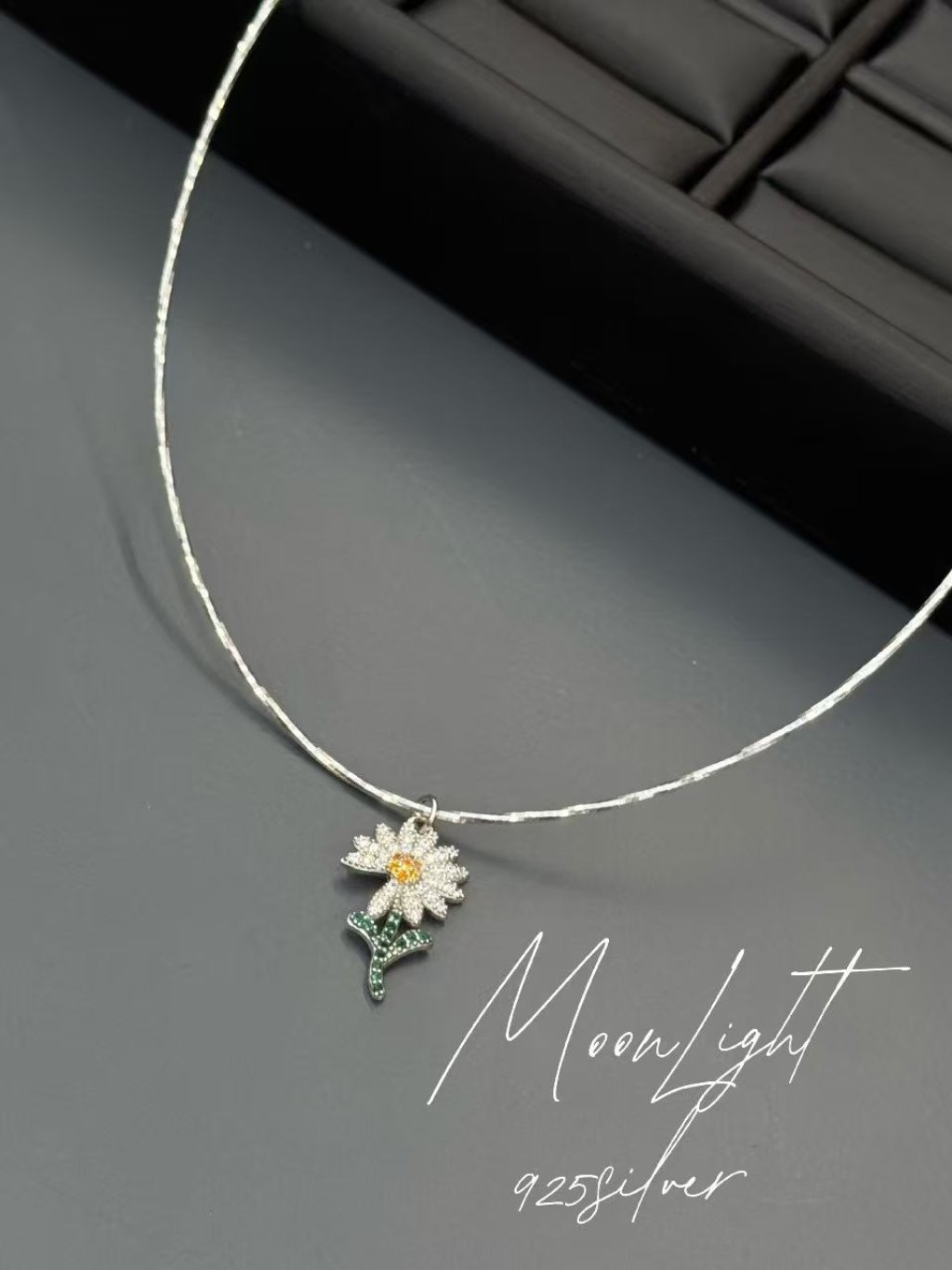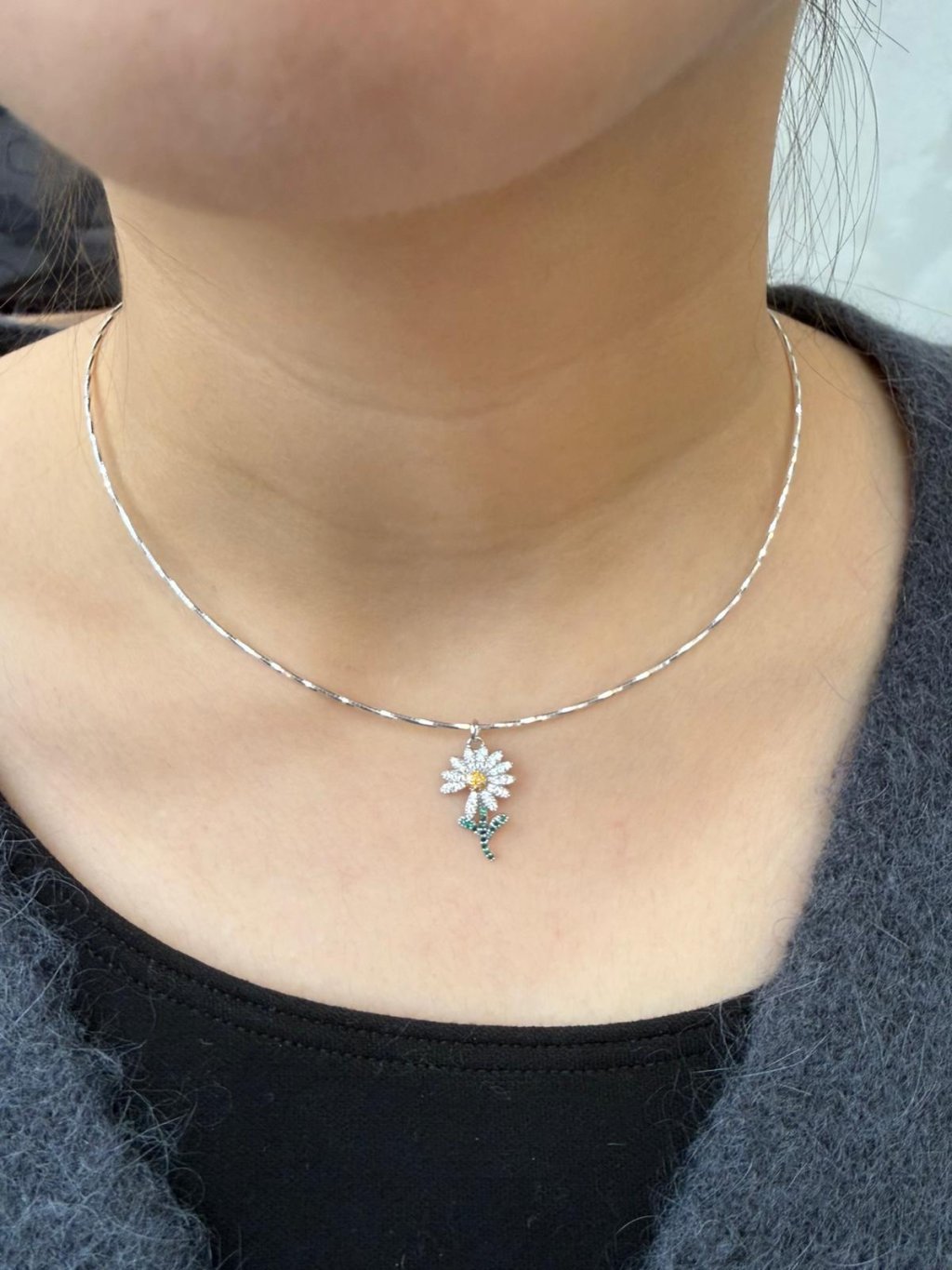 MS12 韓國925純銀小初菊+Swarovski頸圈