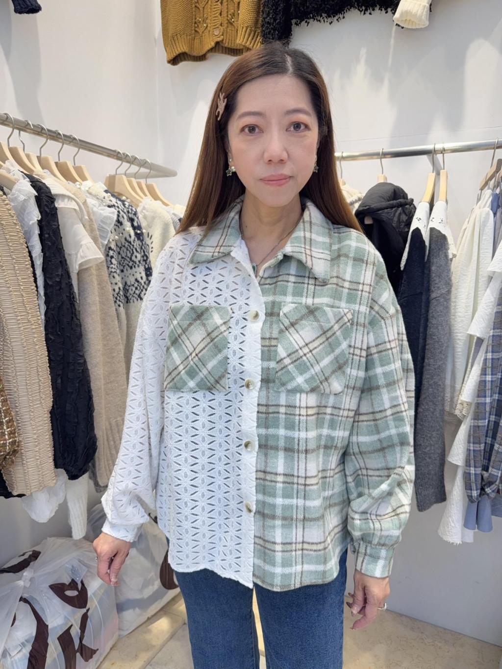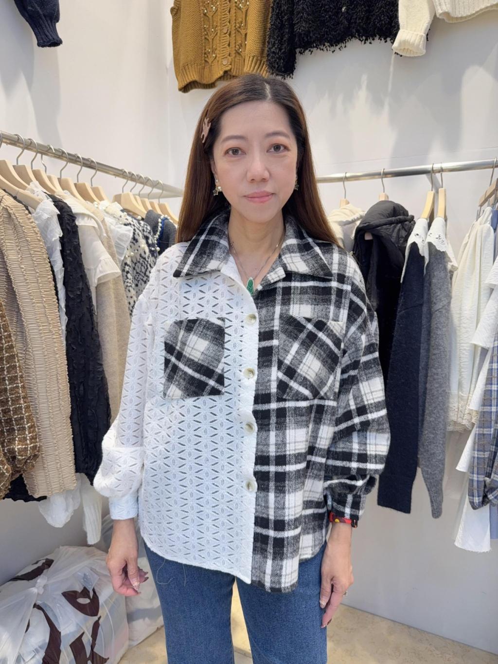 AR6 高質格子拼LACE恤衫