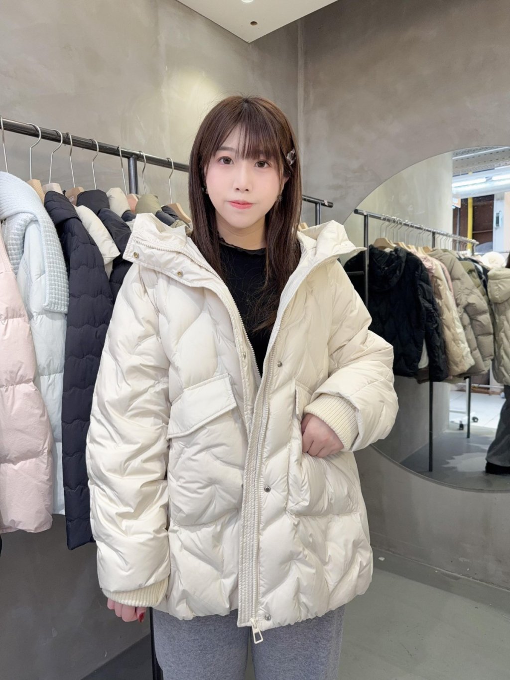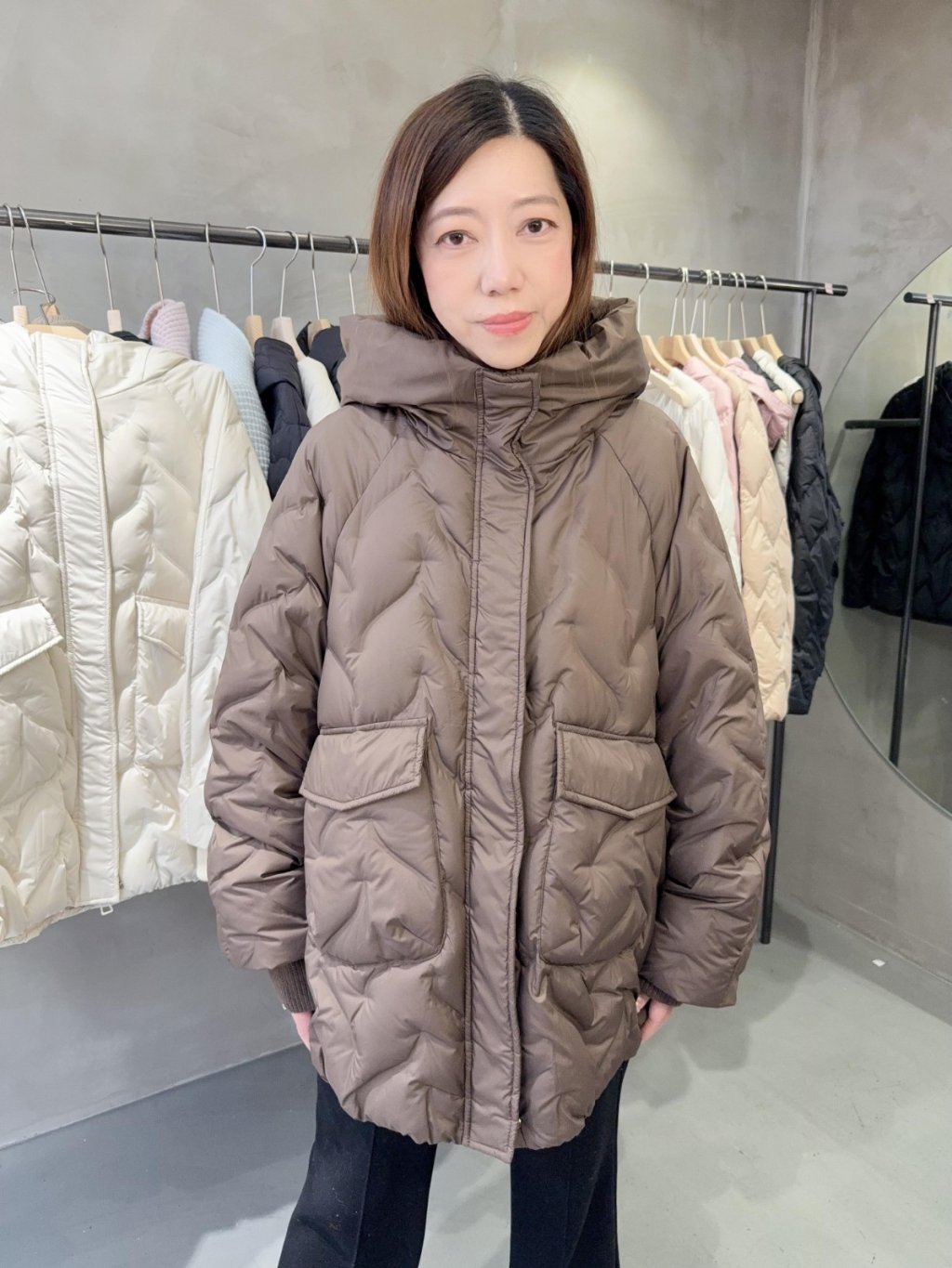 DJ10 韓國高質 (100%鵝絨 ) 中長連帽羽絨褸 (韓國制造)