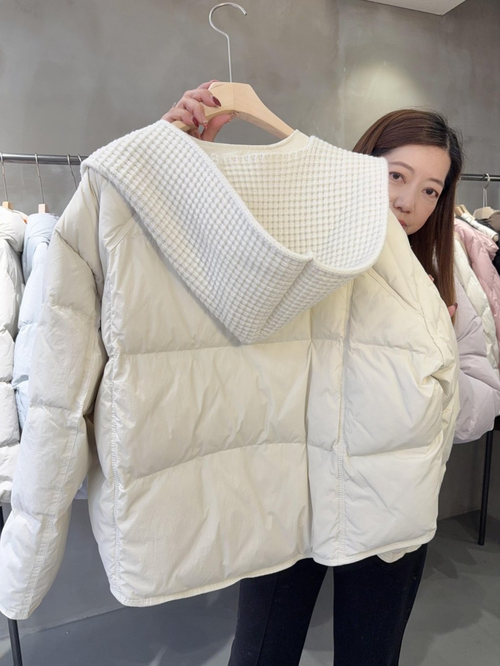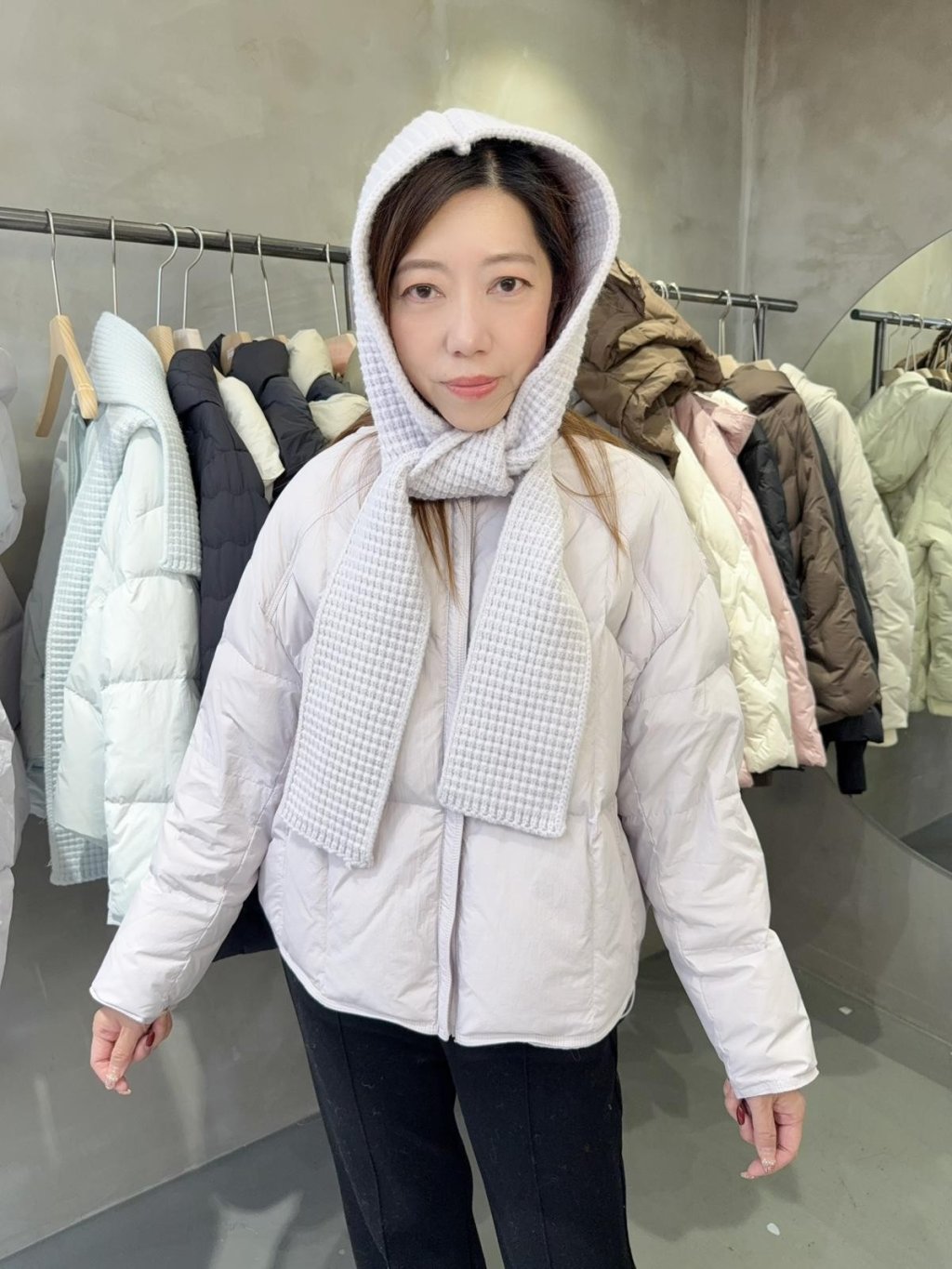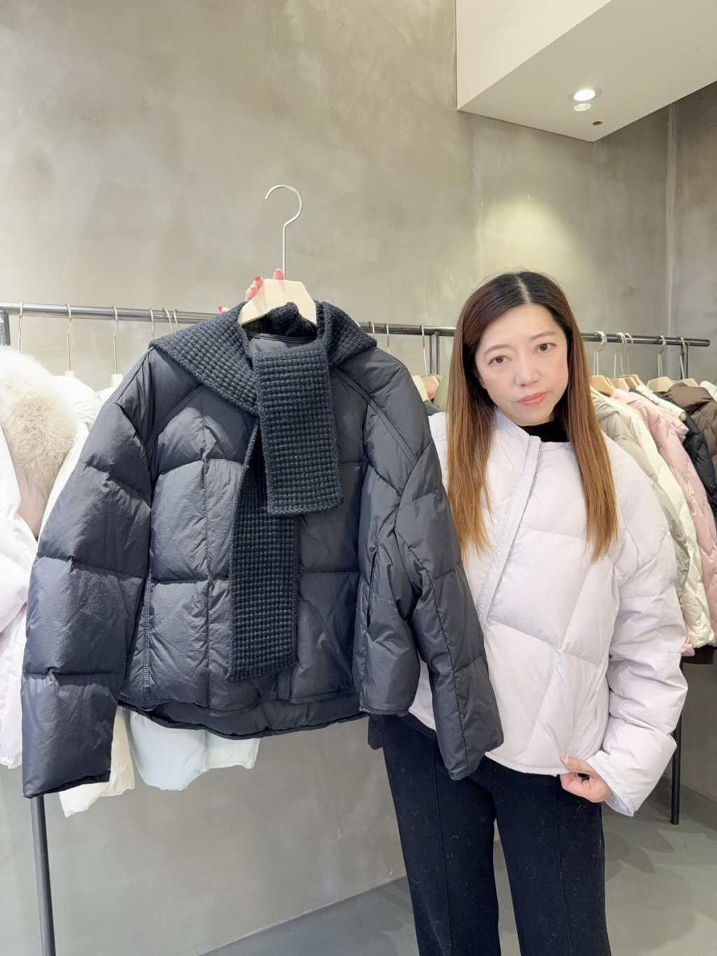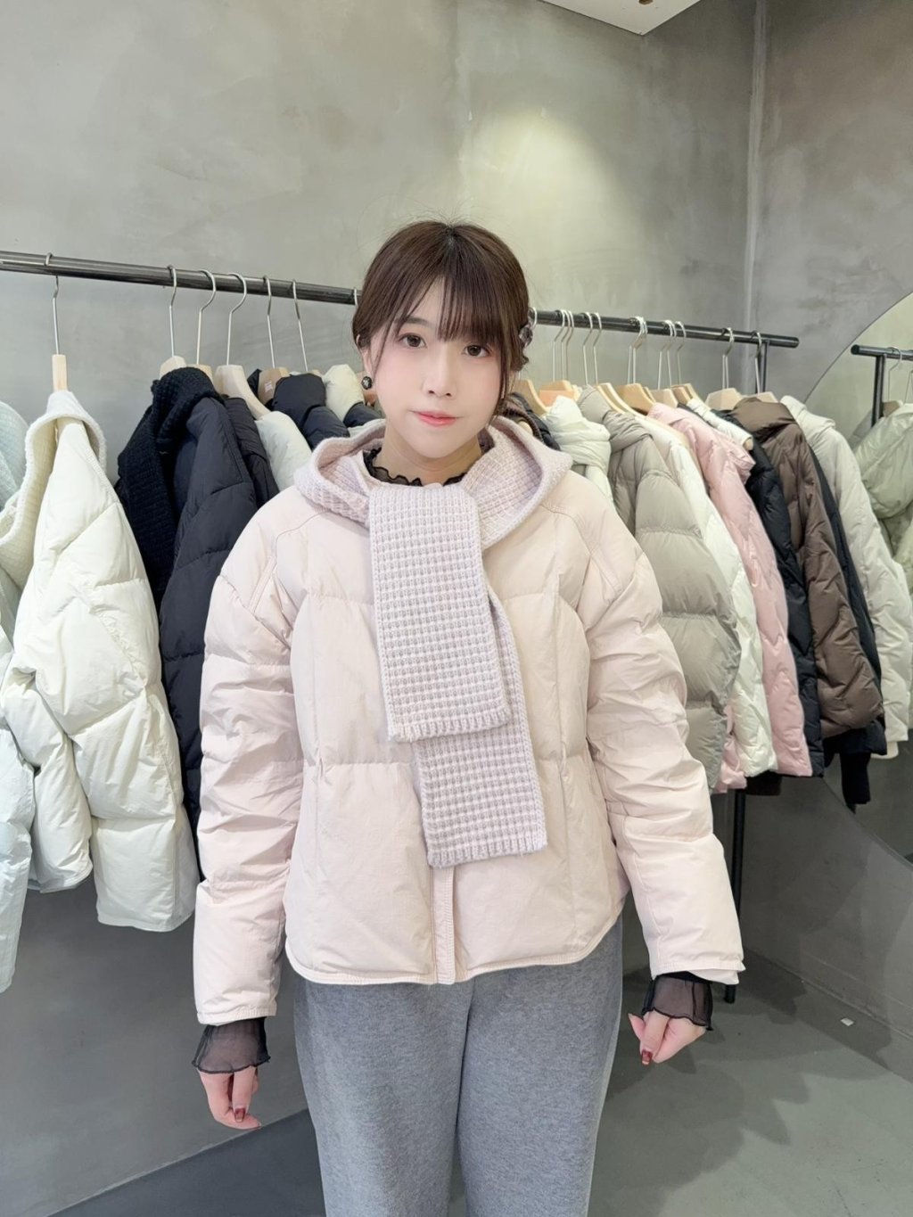 DJ14 韓國高質 (100%鵝絨 )圓領款羽絨+冷圍巾套裝 (韓國制造)