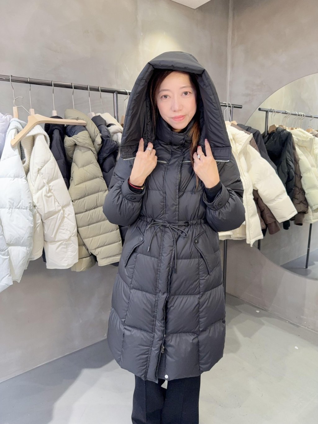 DJ15 韓國高質 (100%鵝絨 ) 有帽可束腰長羽絨 (韓國制造)