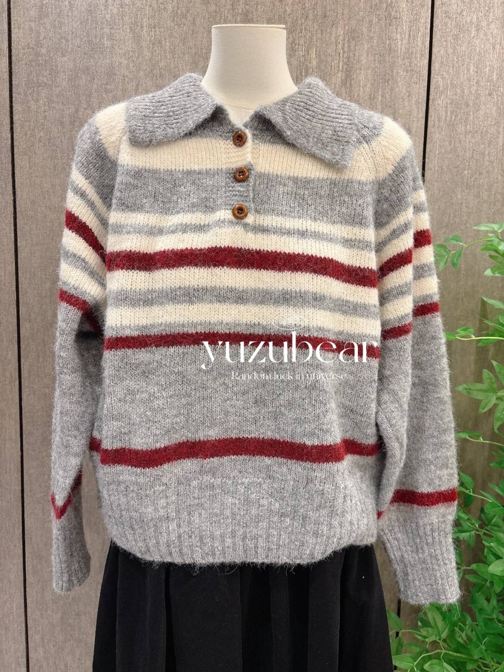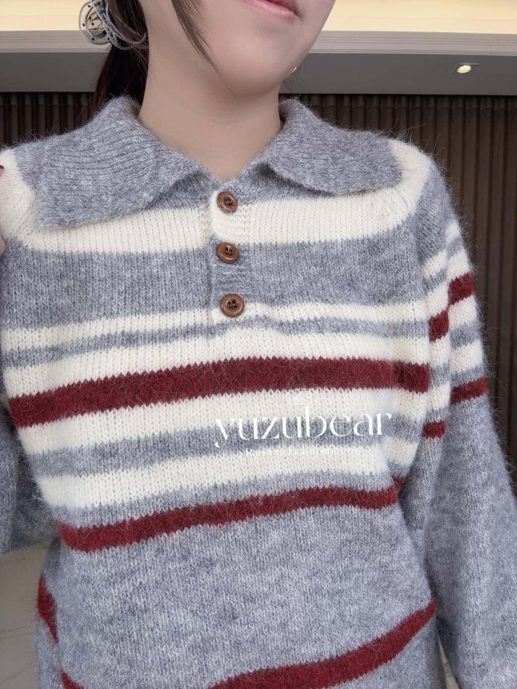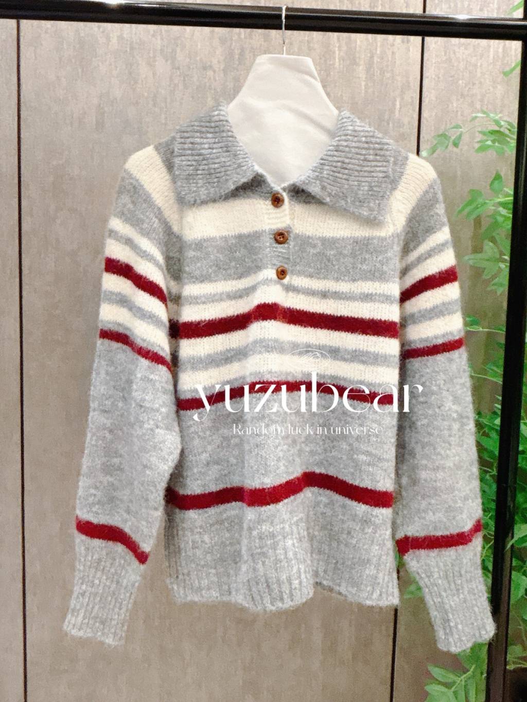 主頁 au256 韓國高質混羊毛20%拼色間條翻領冷衫💖一口優惠價💖