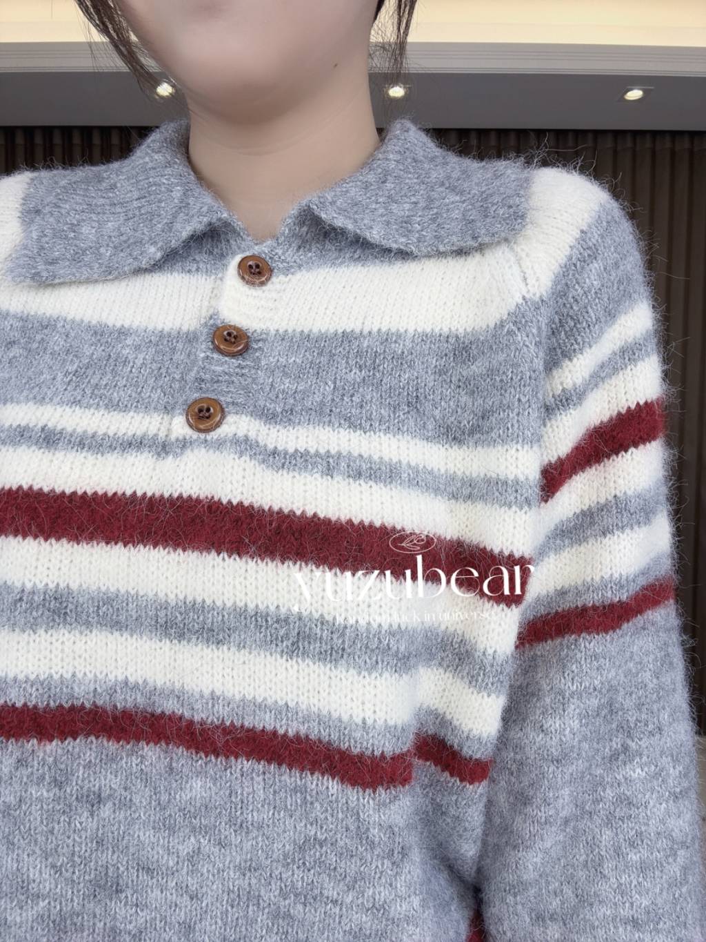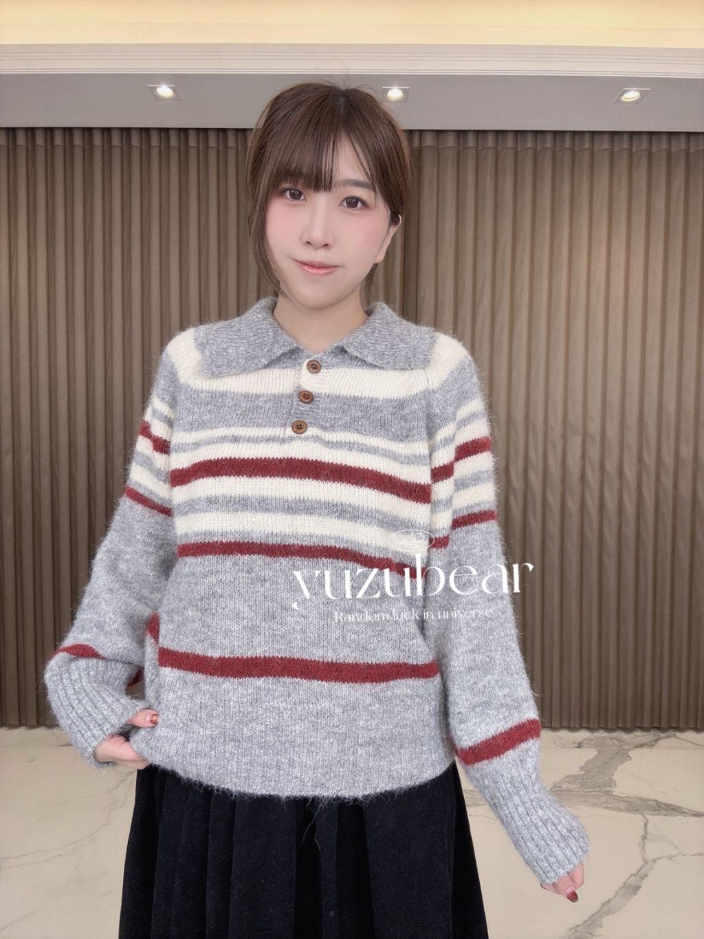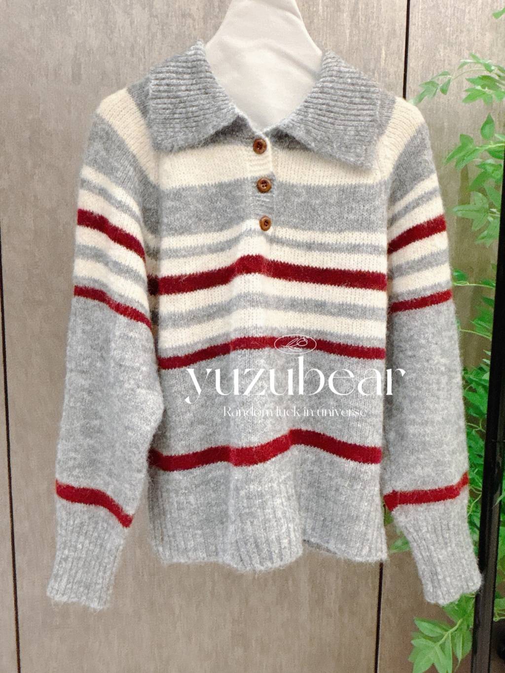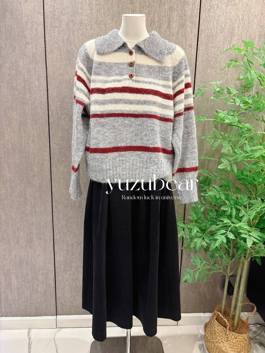 主頁 au256 韓國高質混羊毛20%拼色間條翻領冷衫💖一口優惠價💖