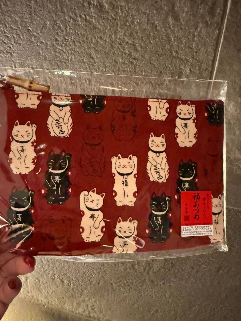 招財貓紅色和布小袋子Made in Japan 100%棉