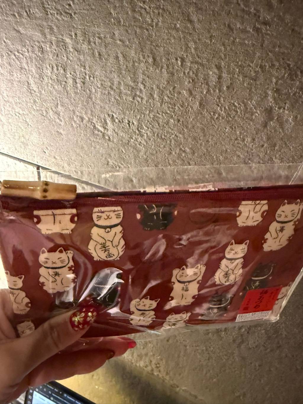 JP14 招財貓紅色和布小袋子Made in Japan 100%棉(有拉鏈)