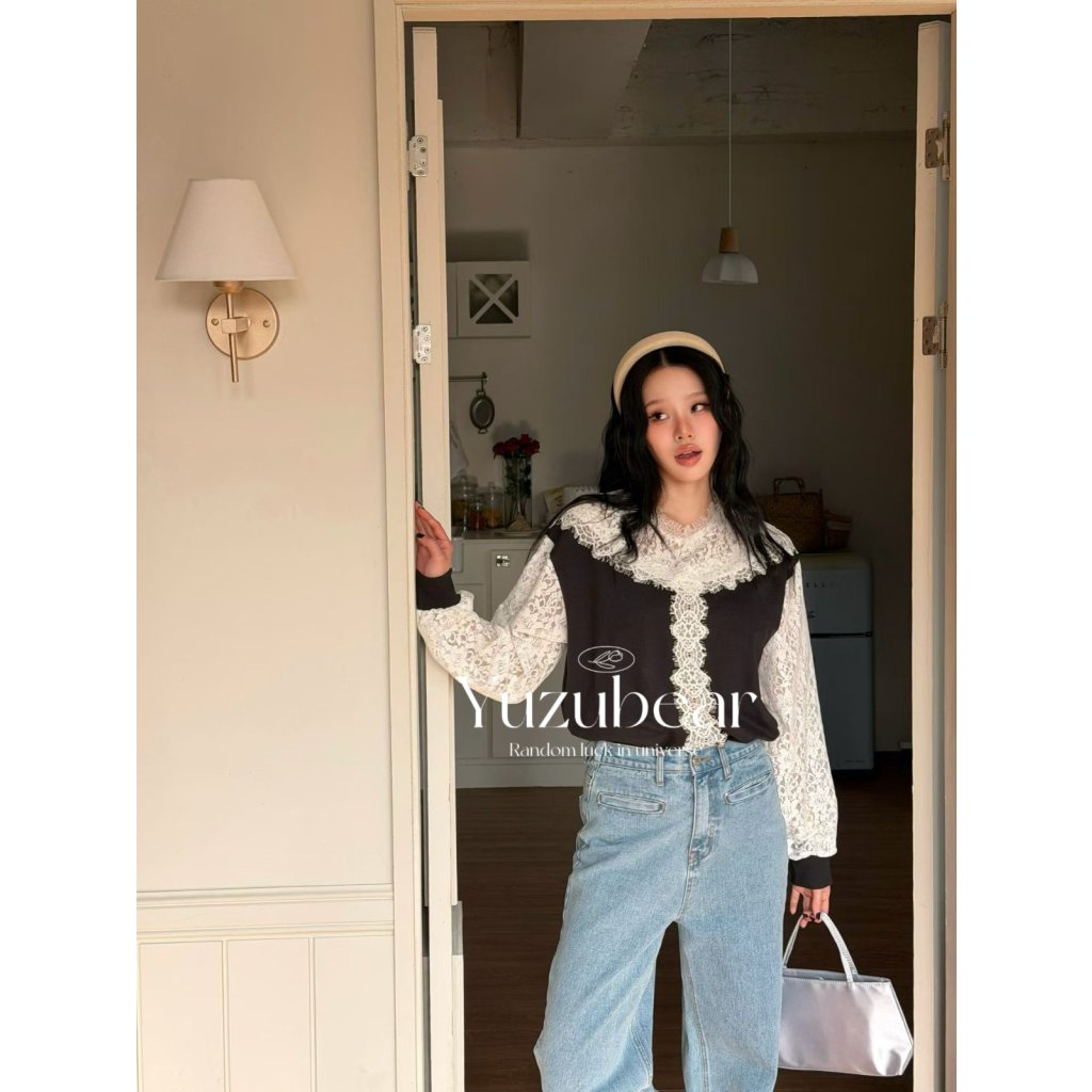 VA3 韓國高質lace拼布blouse