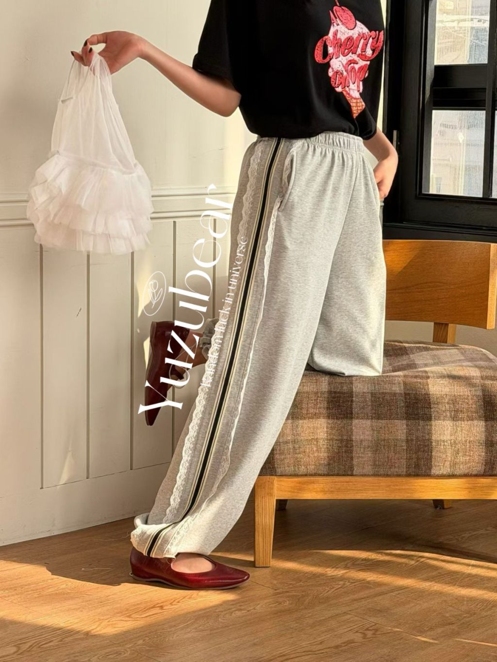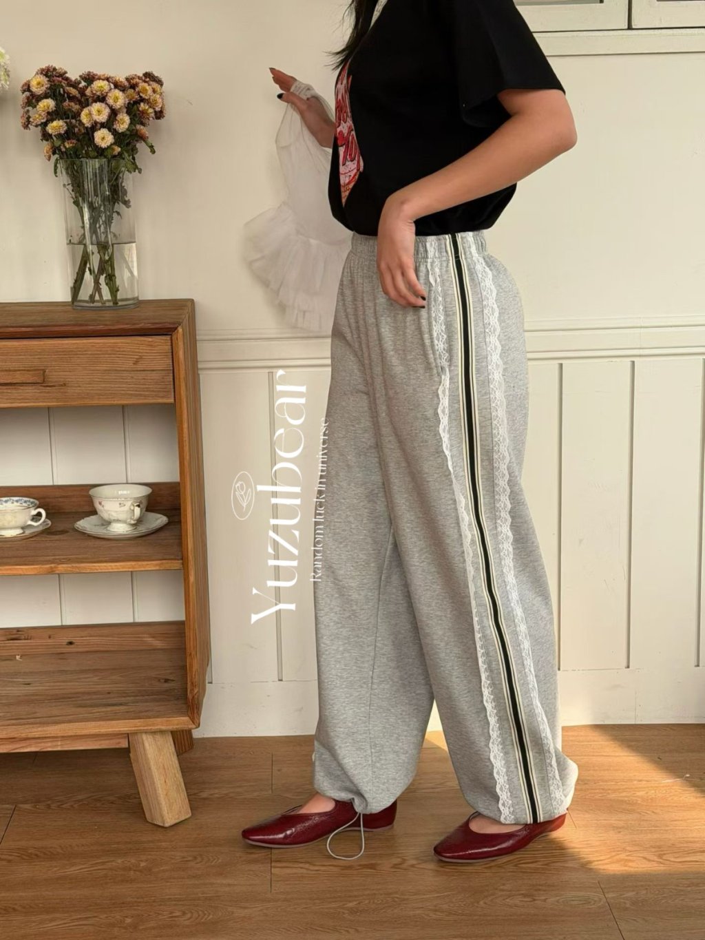 VA14 韓國高質lace邊休閑褲