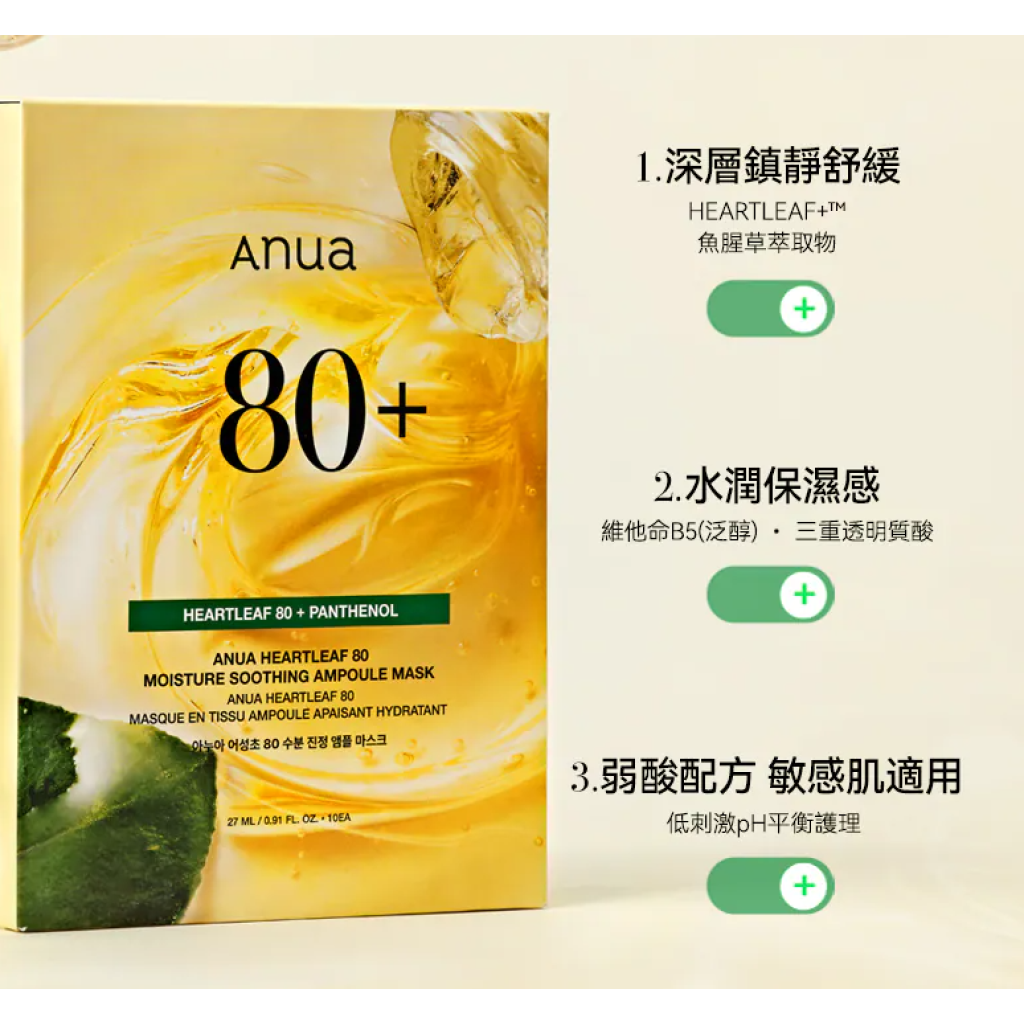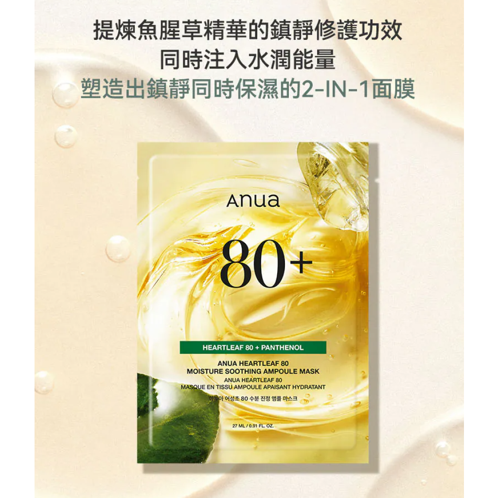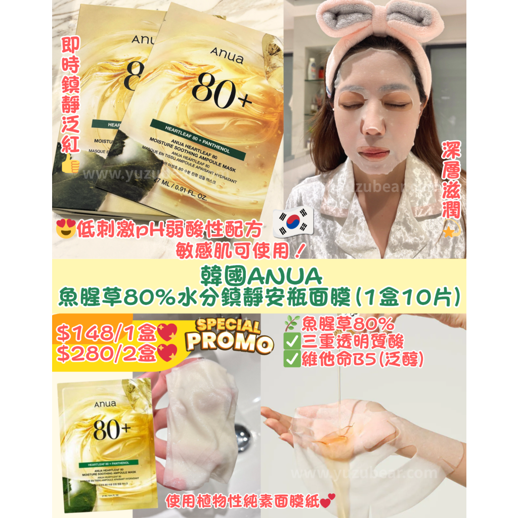AN2 韓國ANUA 魚腥草80%水分鎮靜安瓶面膜(1盒10片)【$148/1盒💖$280/2盒💖】