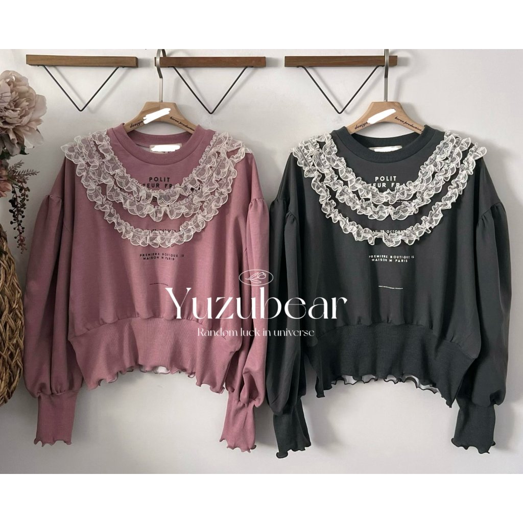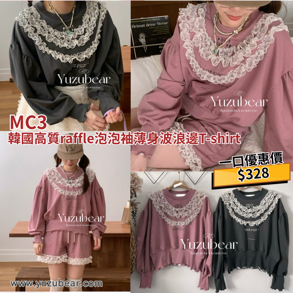 MC3 韓國高質raffle泡泡袖薄身波浪邊T-shirt