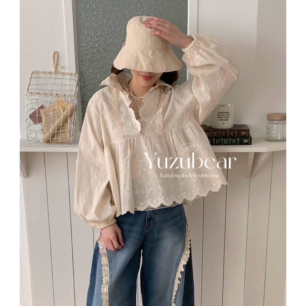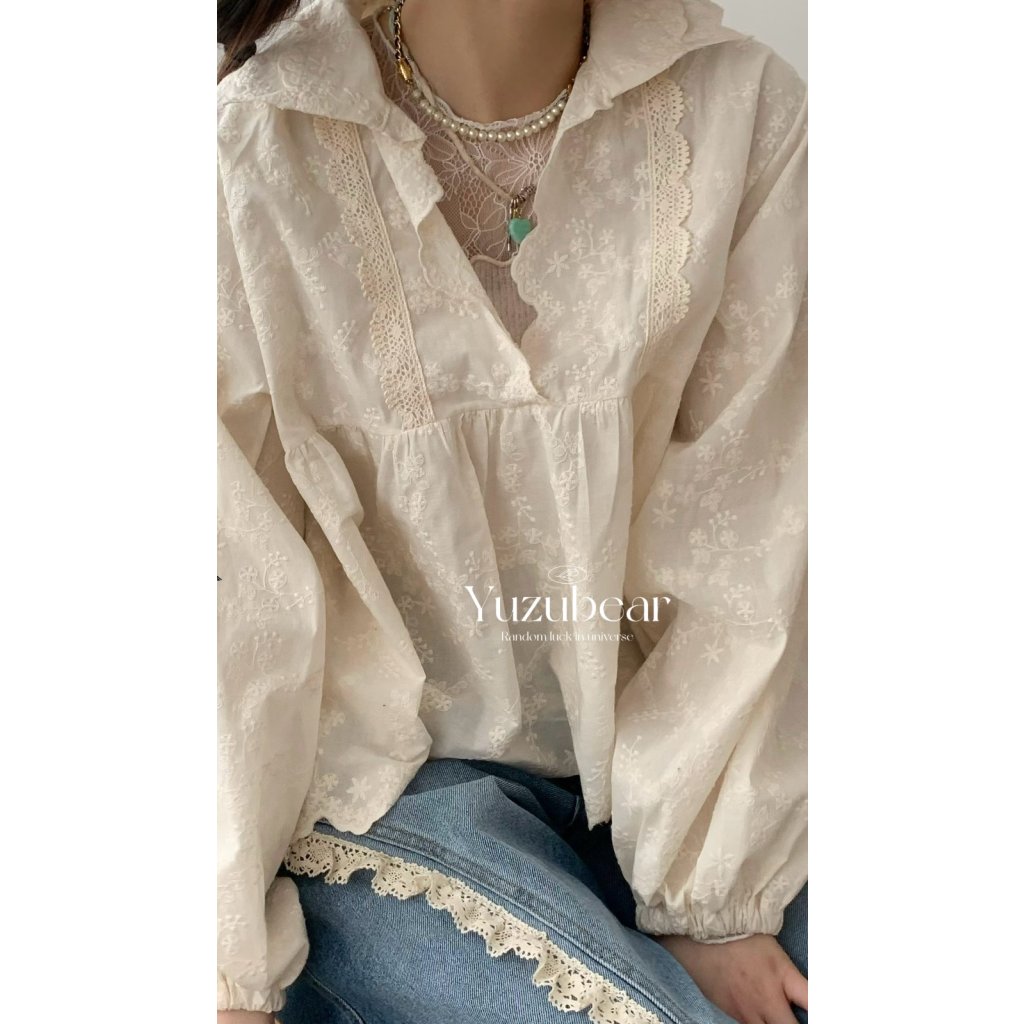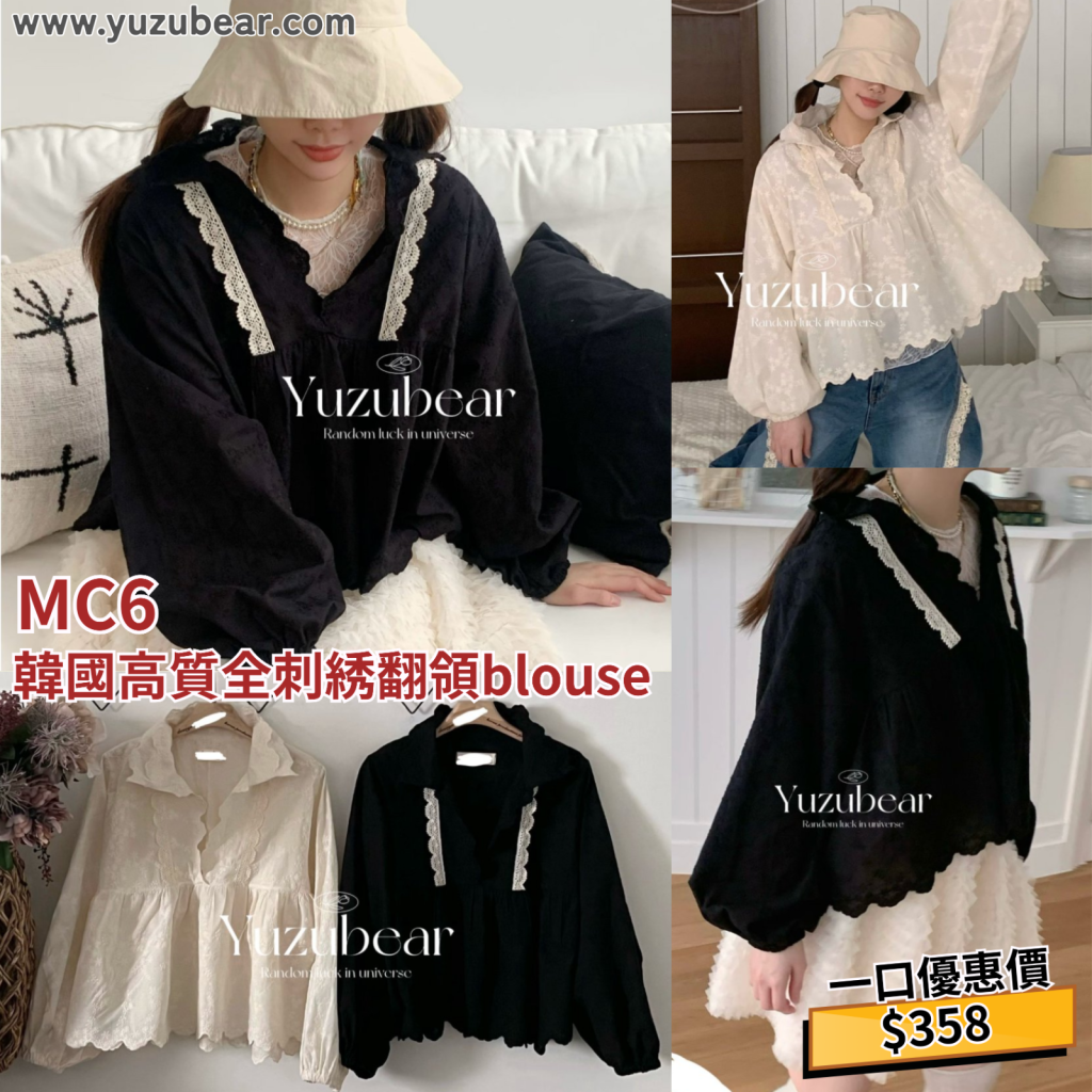 MC6 韓國高質全刺綉翻領blouse