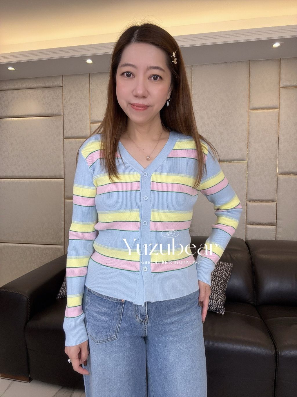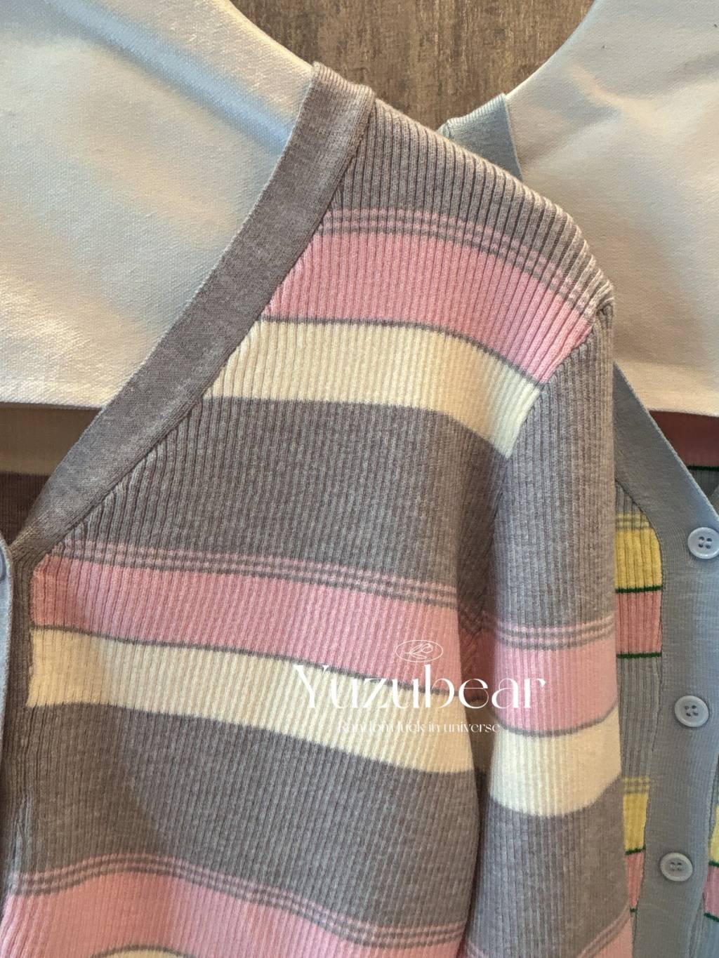 SS32 韓國高質彈性拼色間cardigan