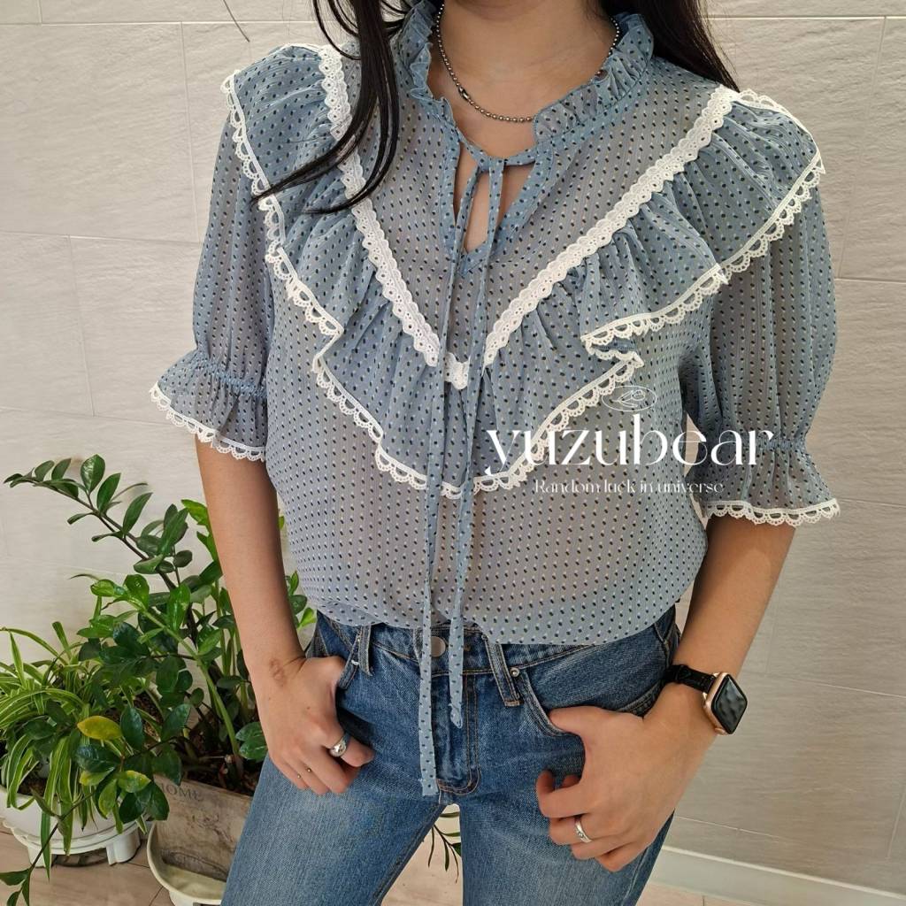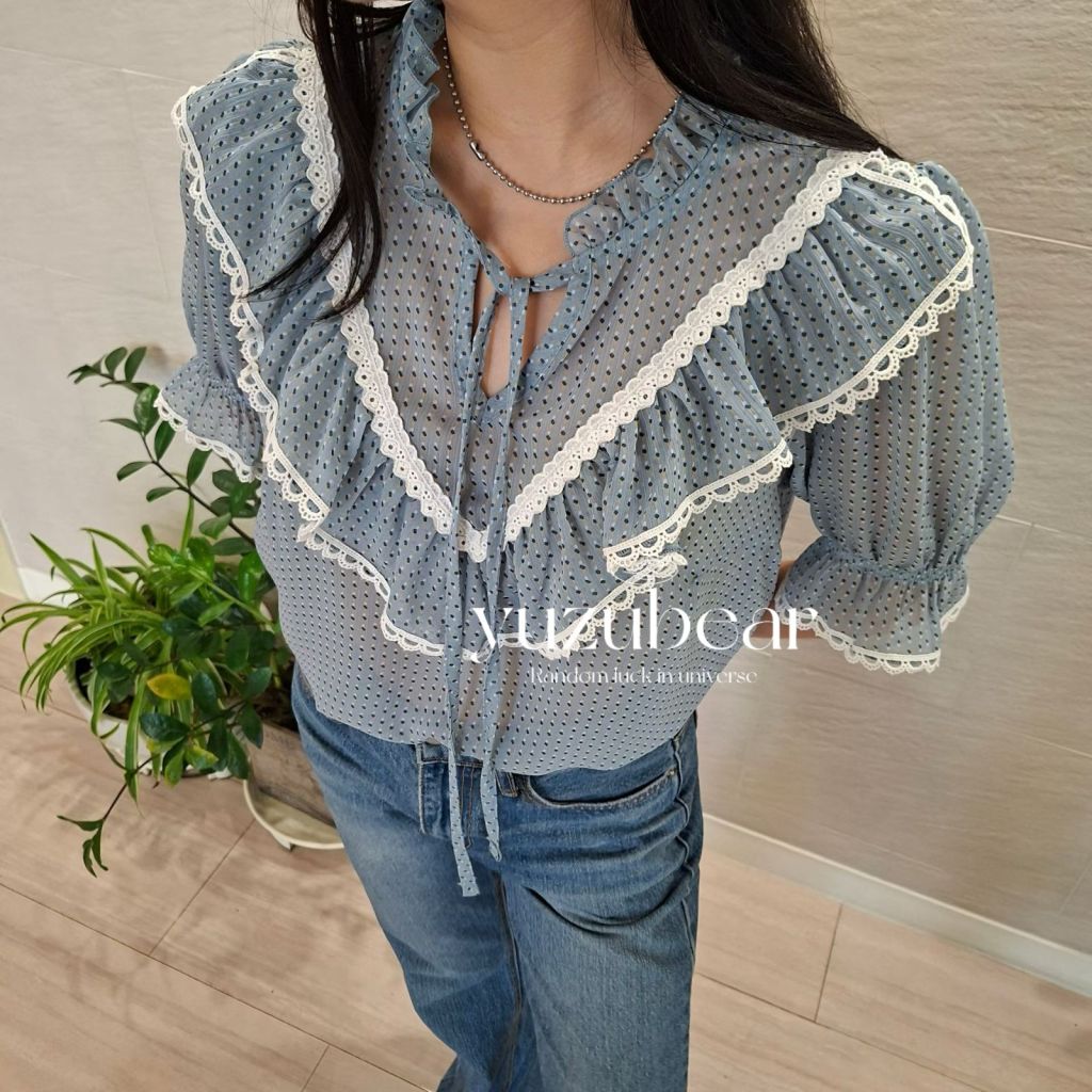 BD3 韓國高質花紋raffle blouse