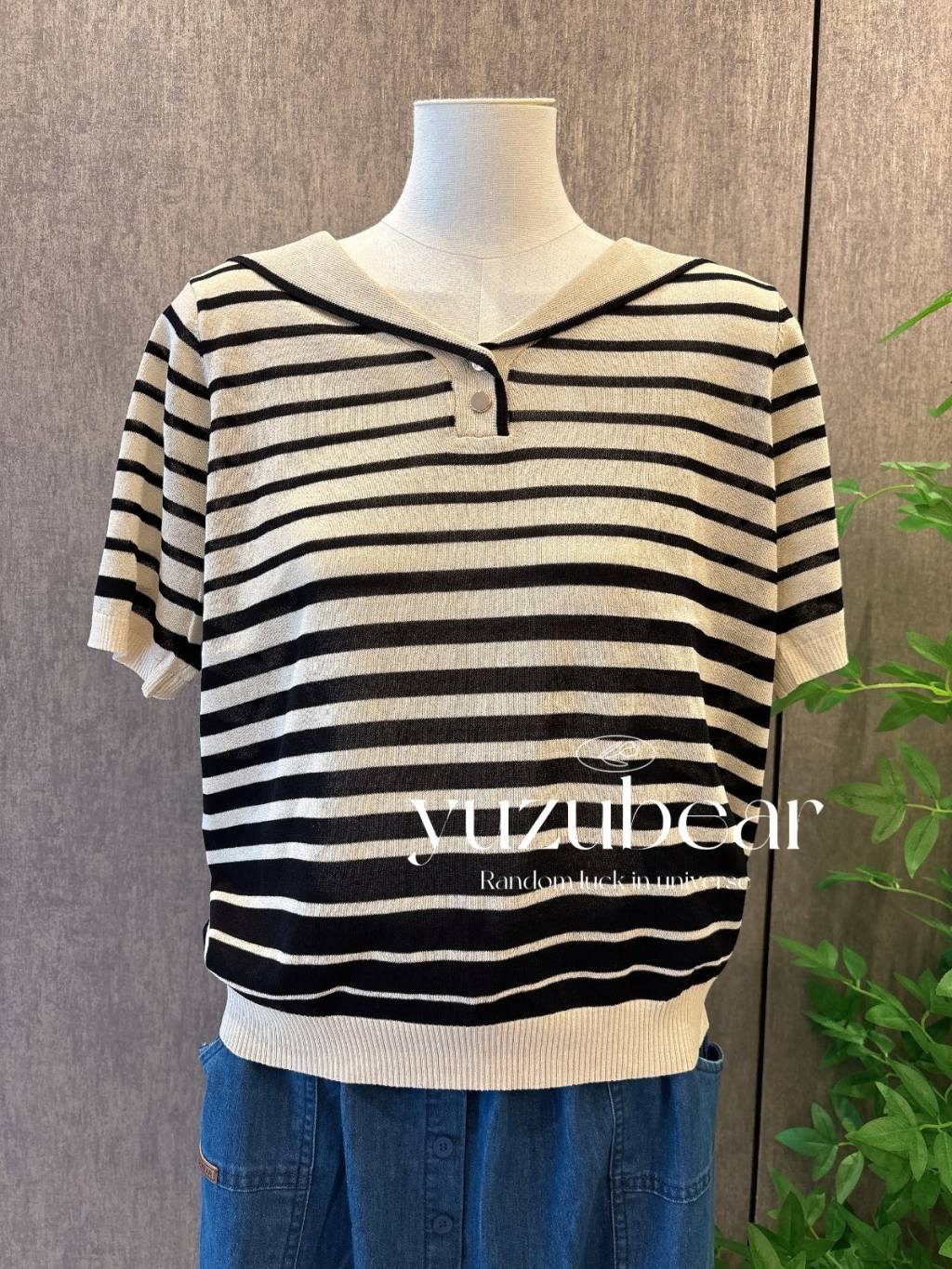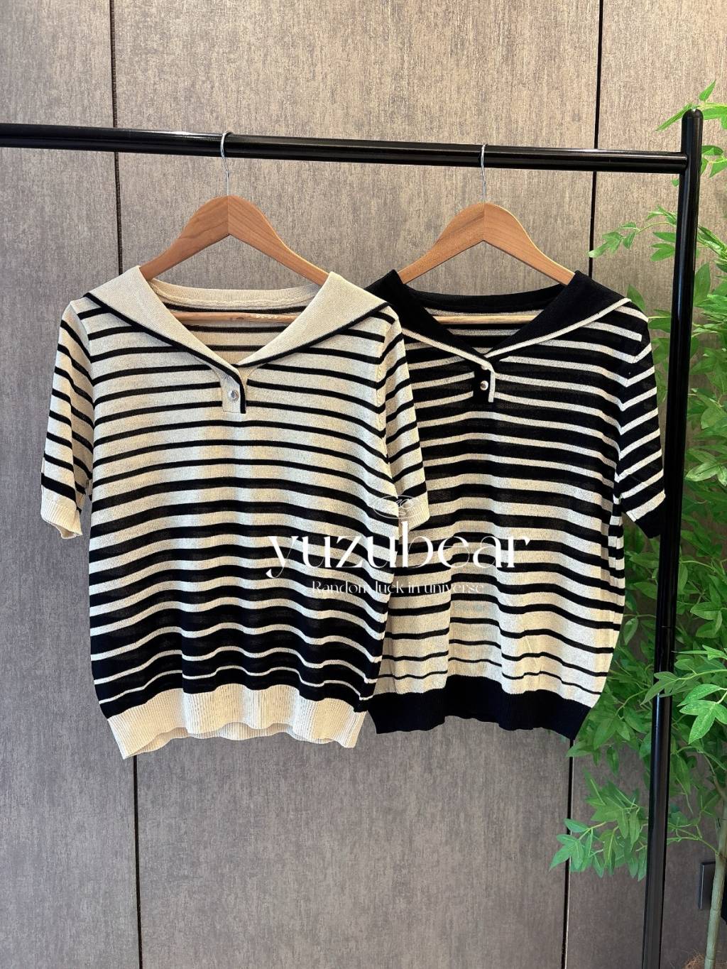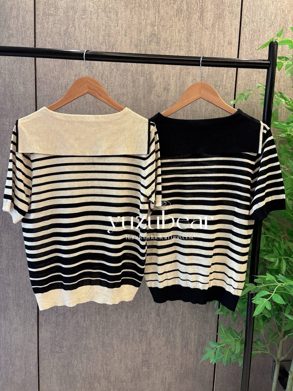 SS39 韓國高質間條漸變色水手領針織衫