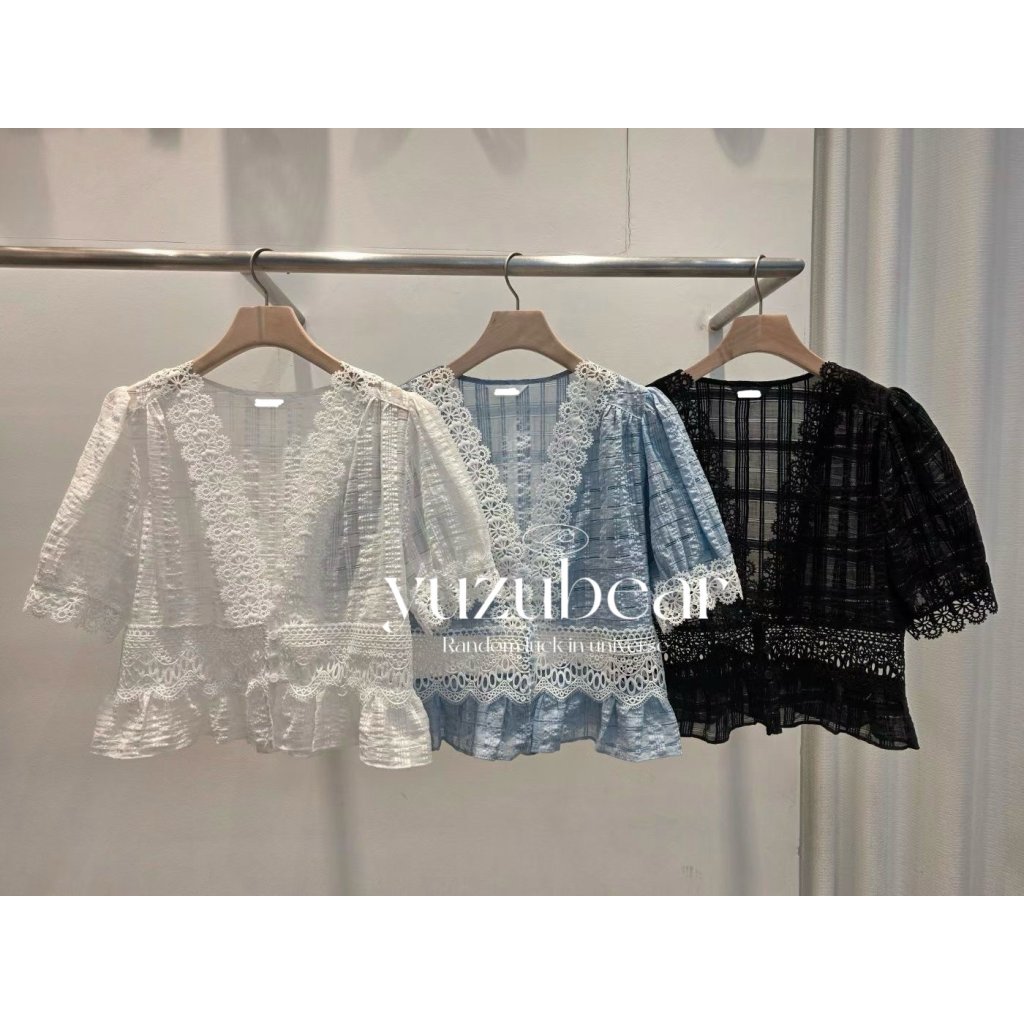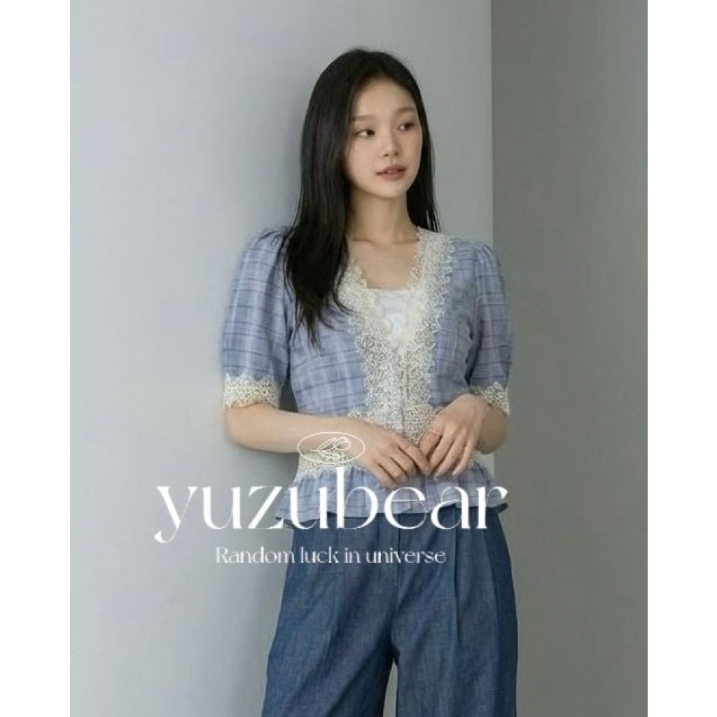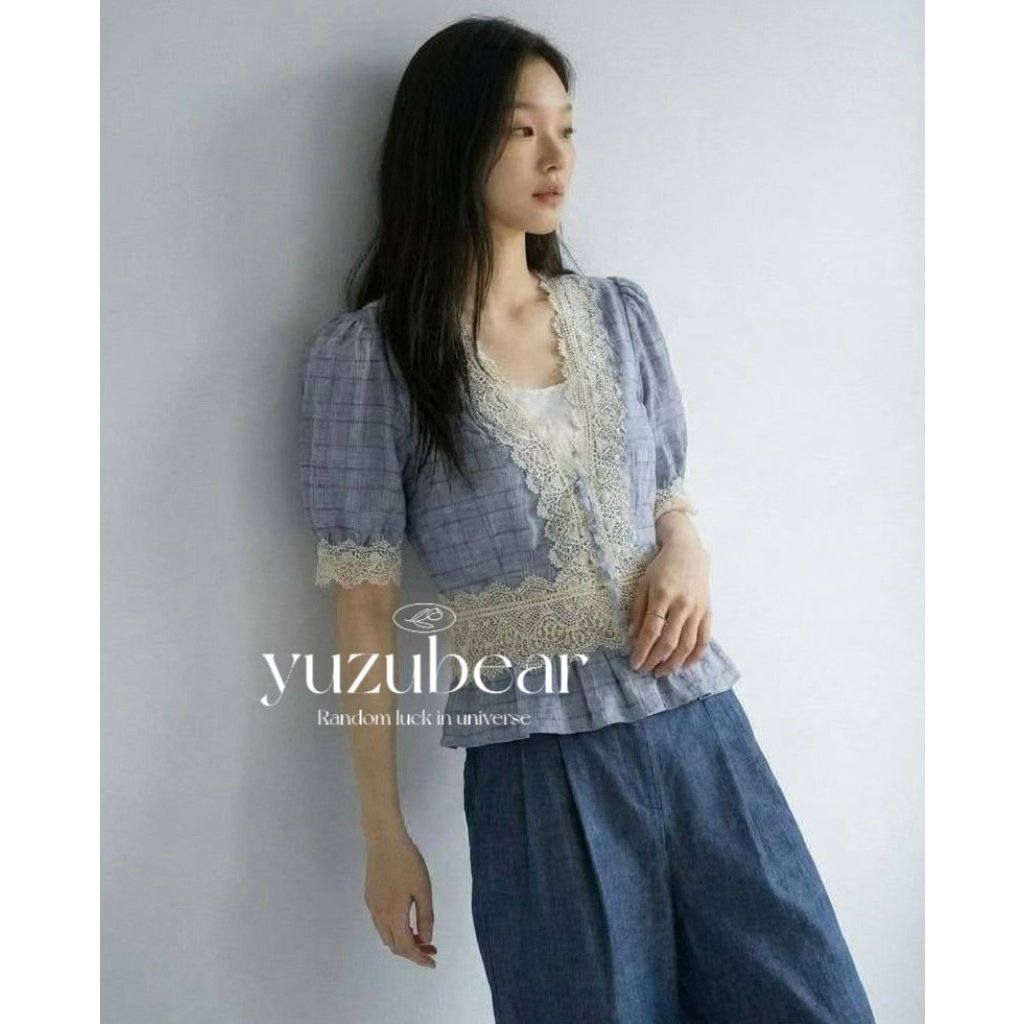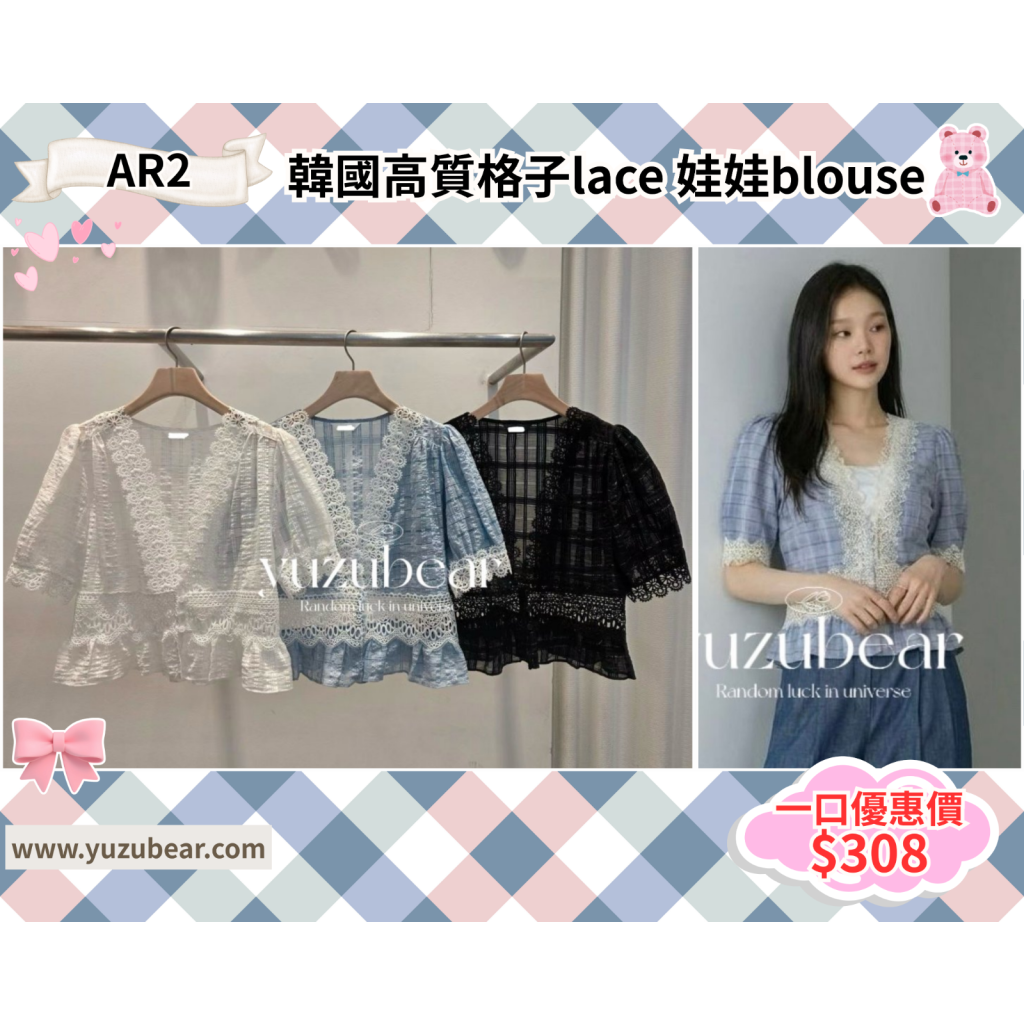 ar2 韓國高質格子lace 娃娃blouse