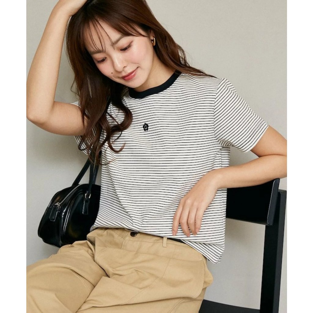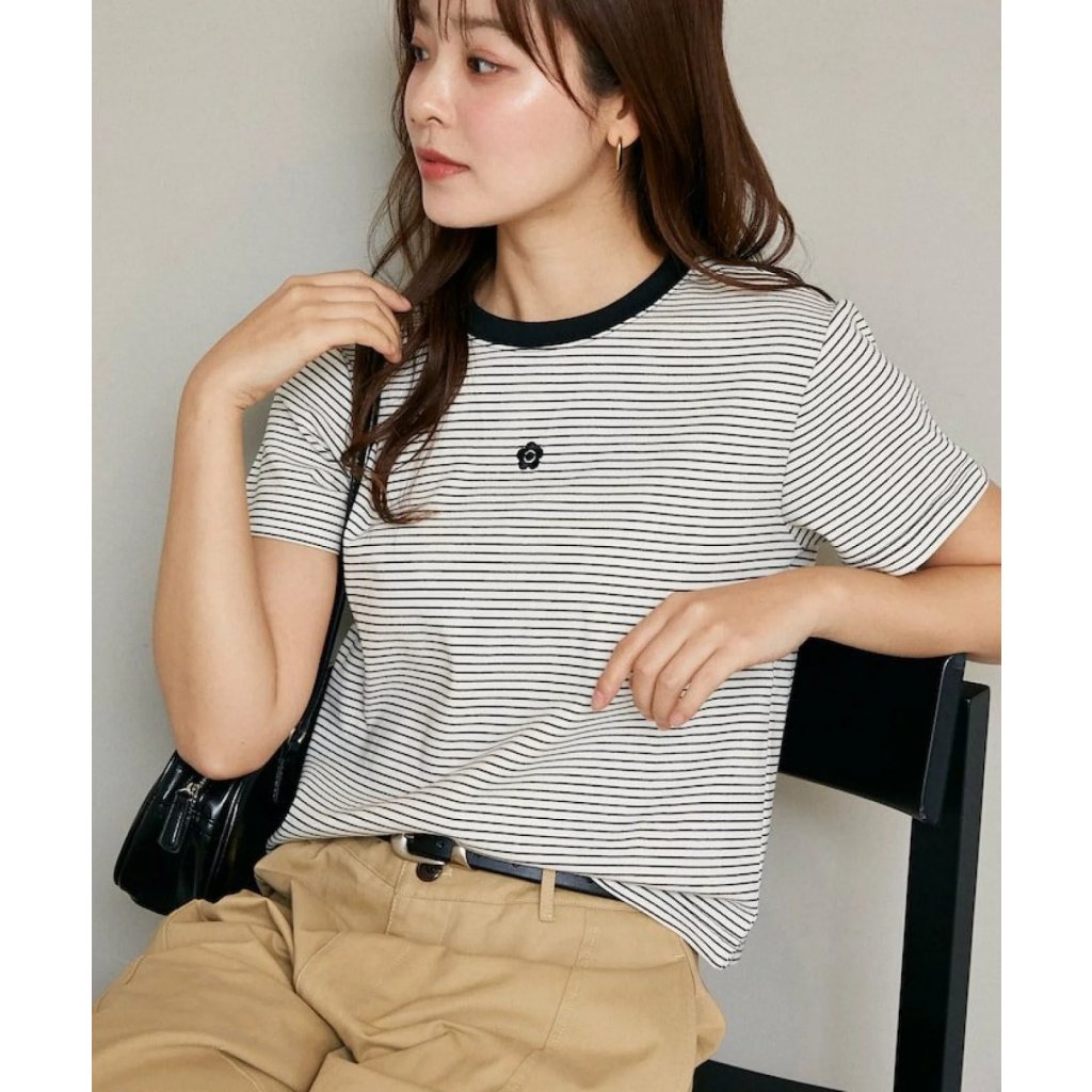 JA8 日本Mary Quant T-shirt 全棉-小刺綉logo (間條)