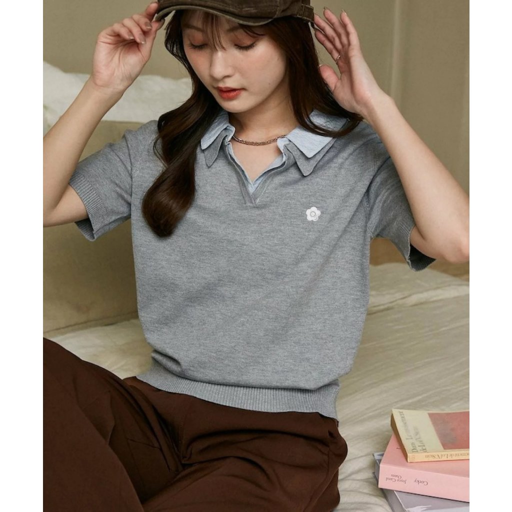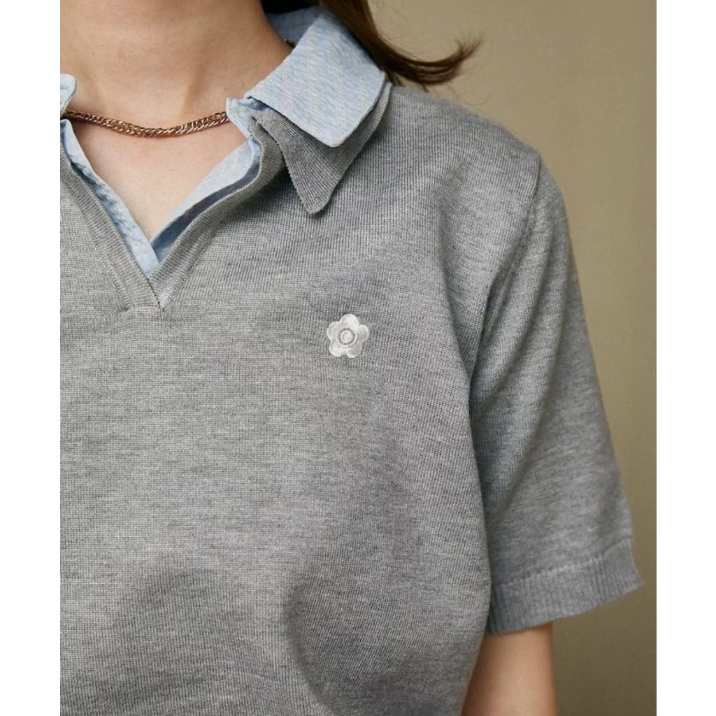 主頁 JA13 日本Mary Quant 春夏學院風翻領針織上衣(灰色)