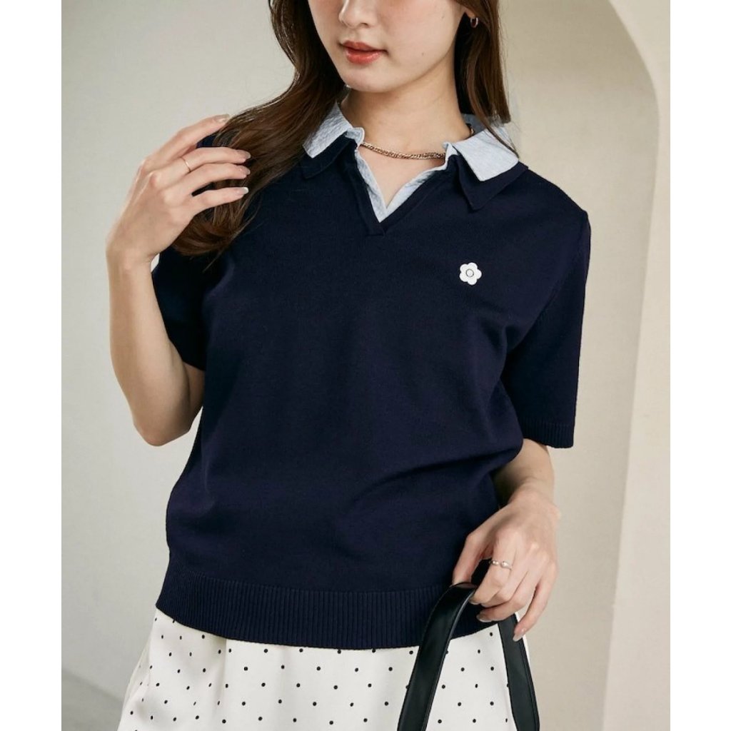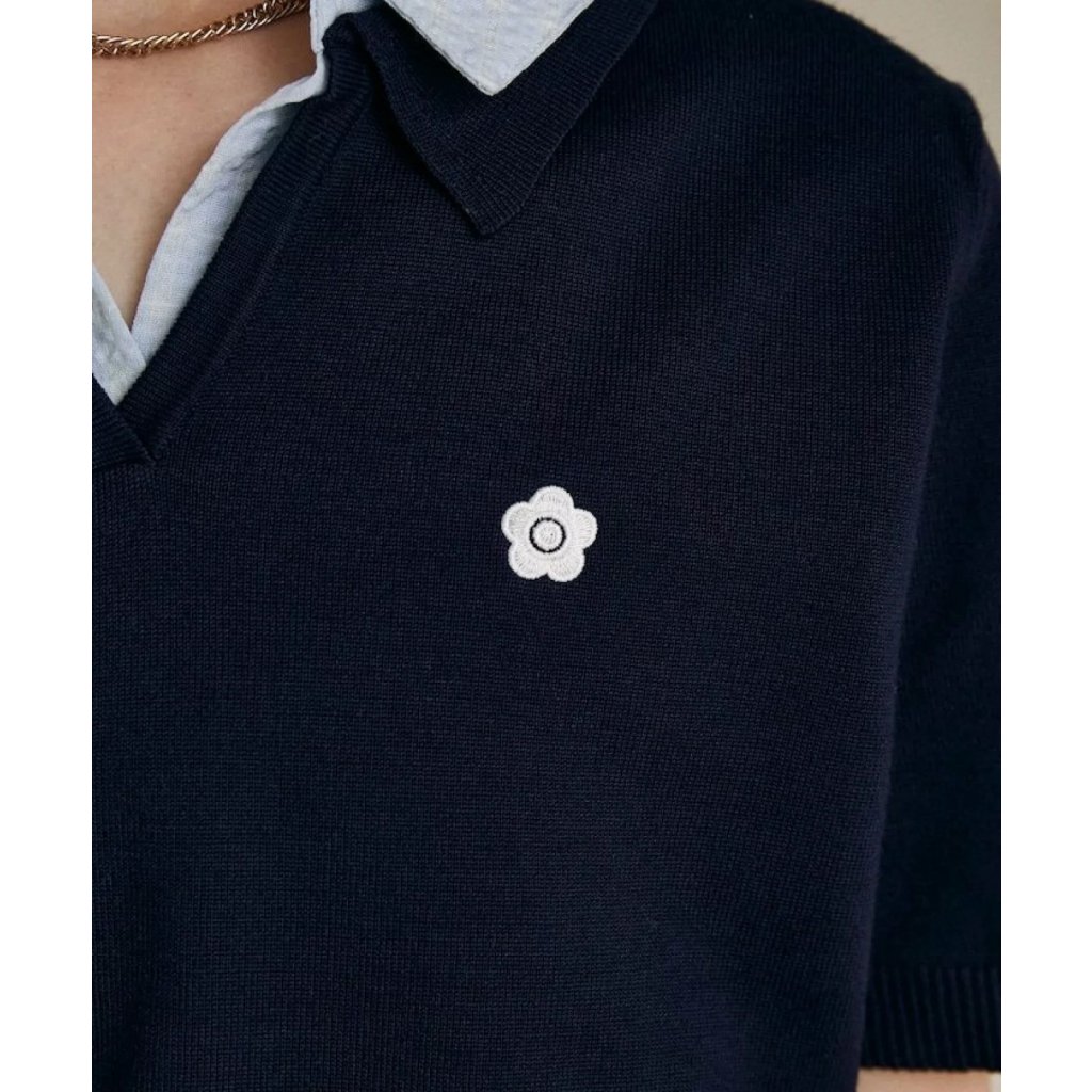主頁 JA14 日本Mary Quant 春夏學院風翻領針織上衣(深藍)