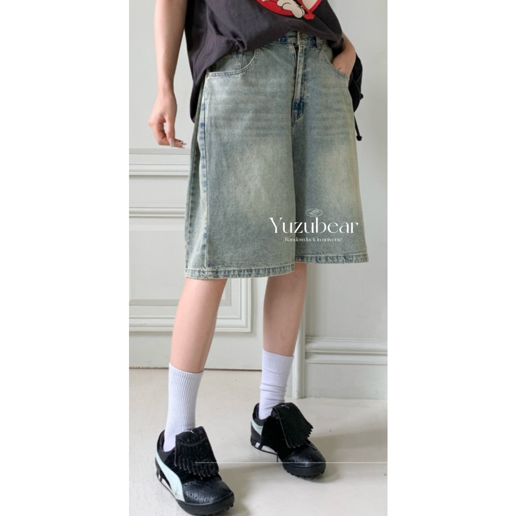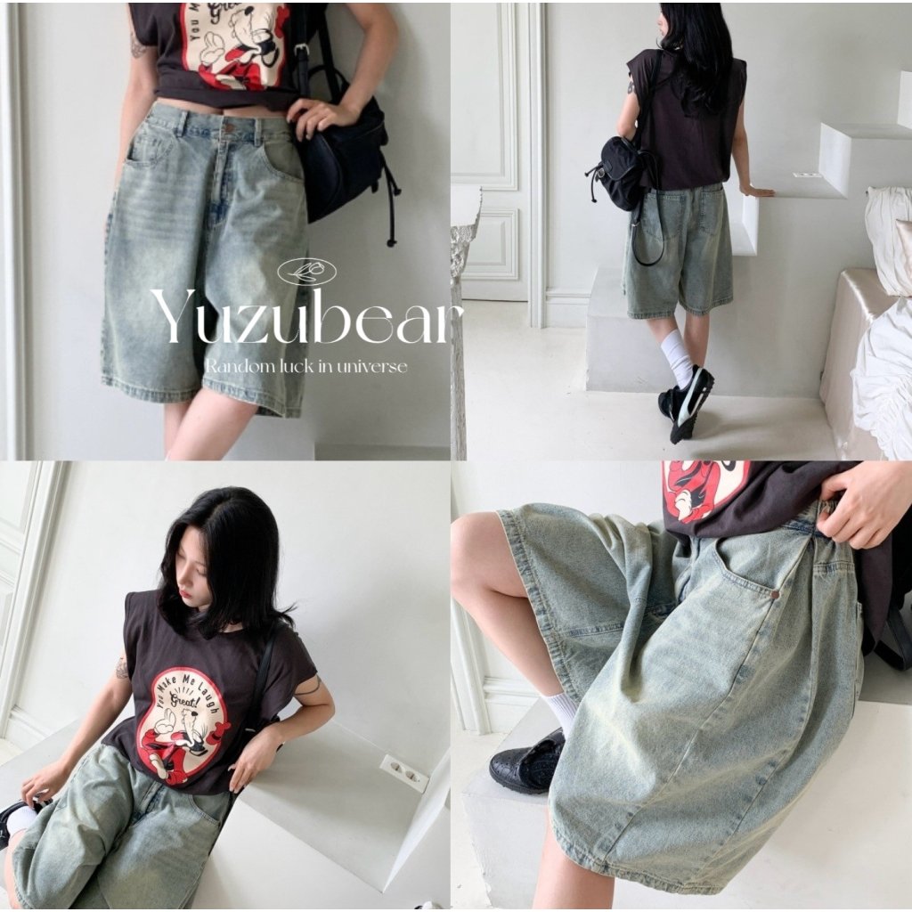 NF3 韓國高質全棉側邊褶洗水七分牛仔褲