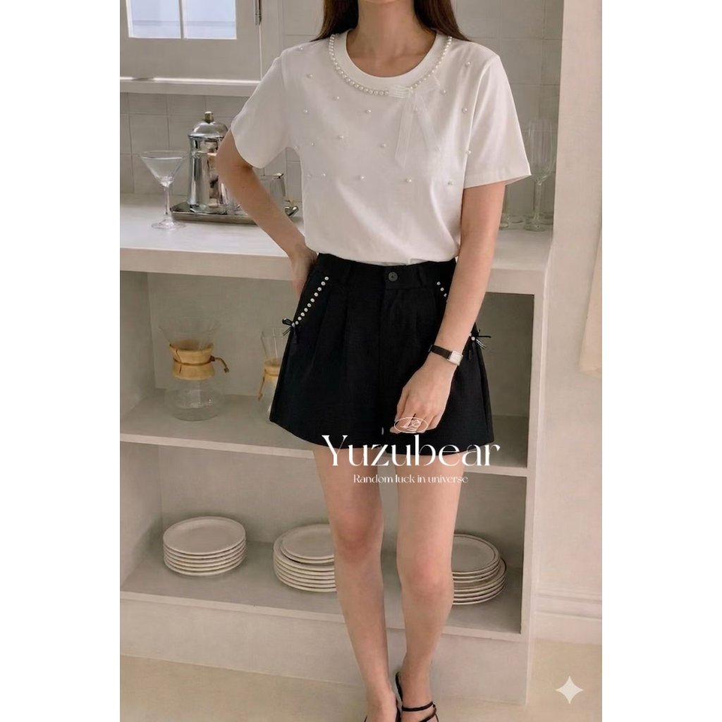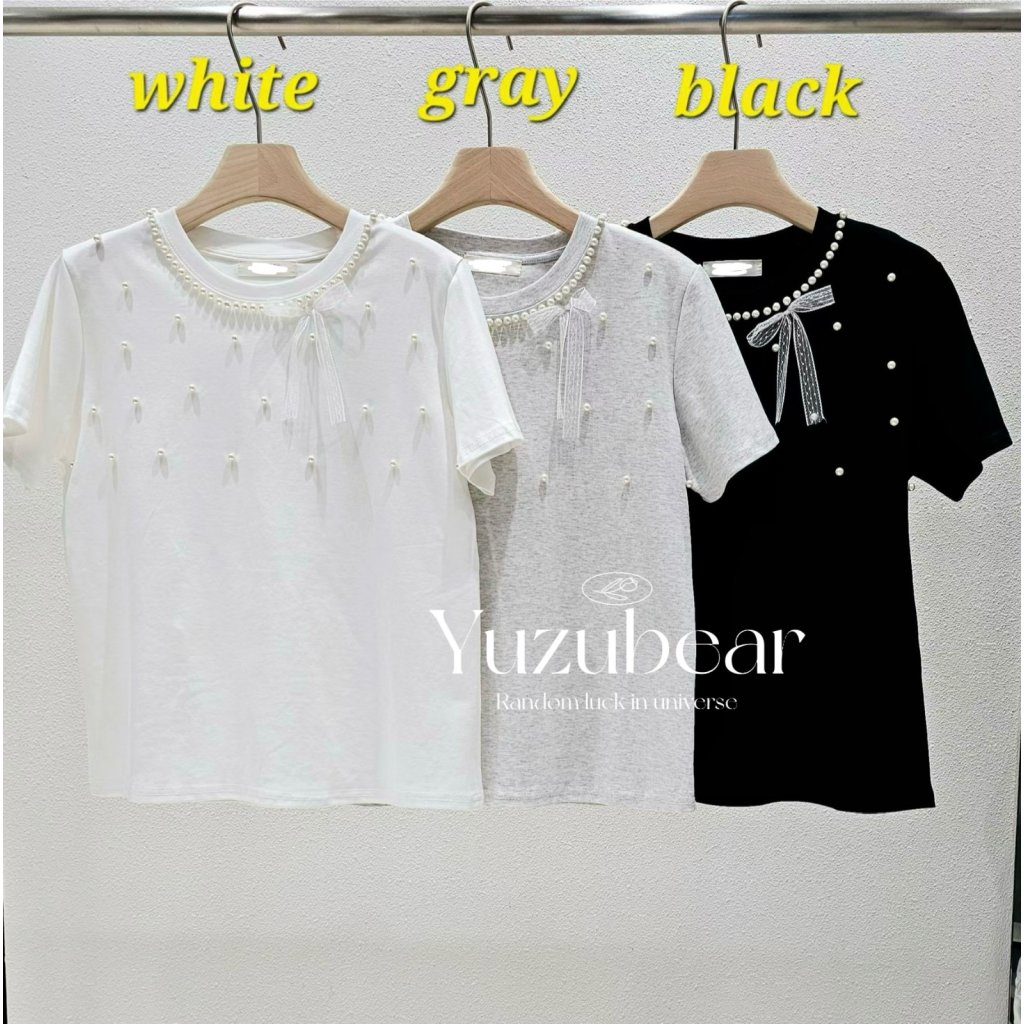 ST1 韓國高質珍珠蝴蝶結T-shirt