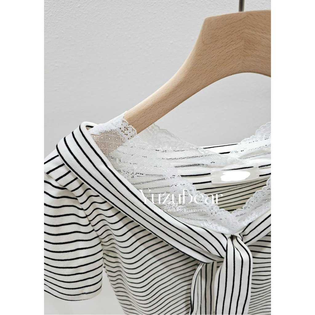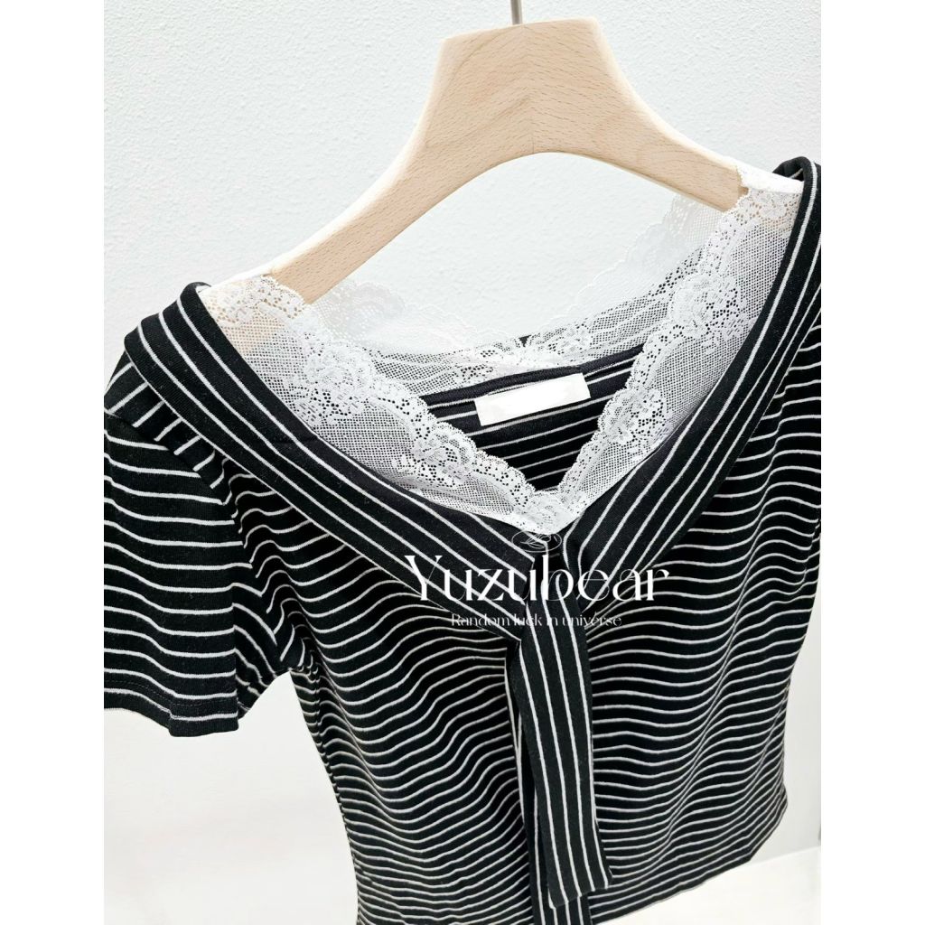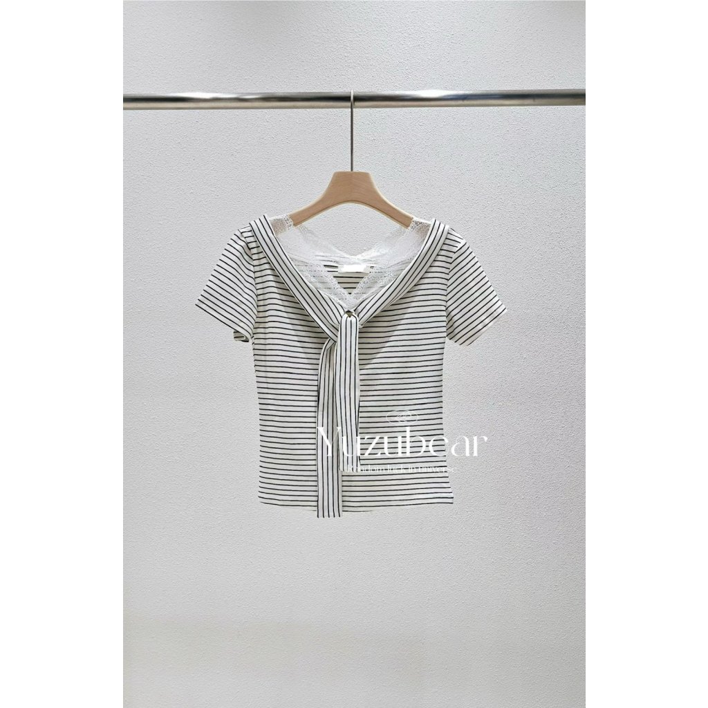 主頁 ST7 韓國高質lace邊水手領間條上衣