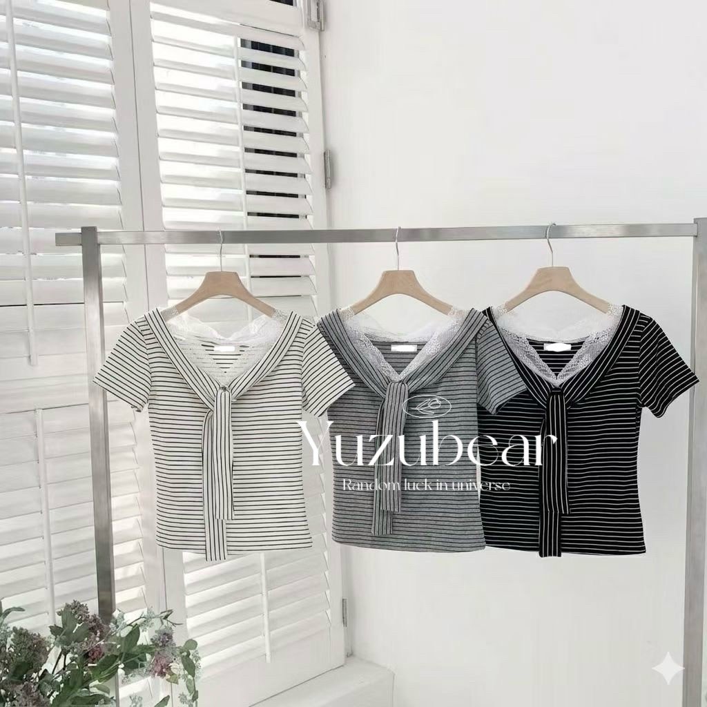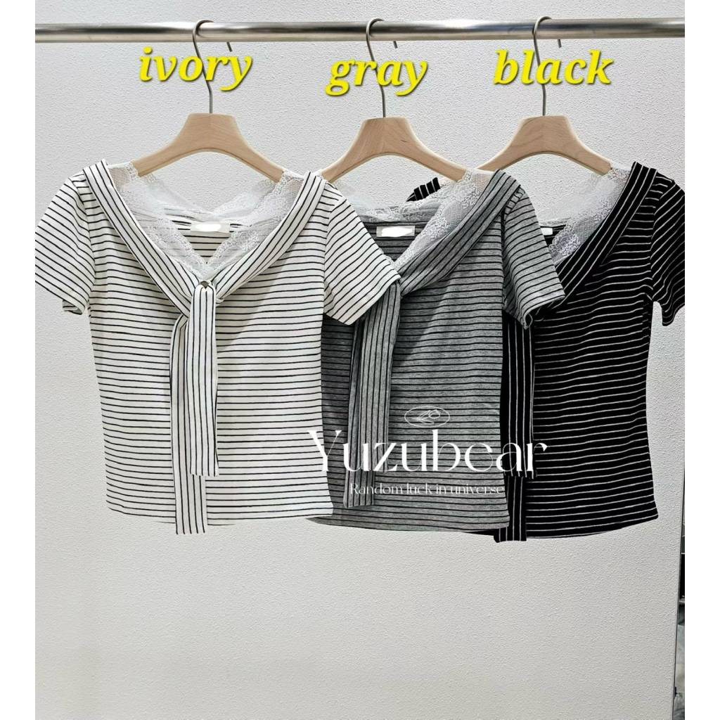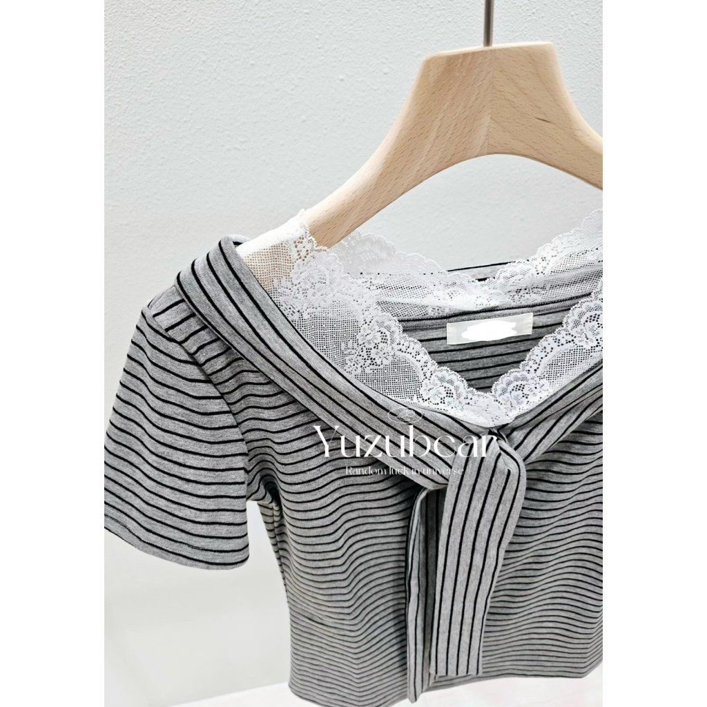 主頁 ST7 韓國高質lace邊水手領間條上衣