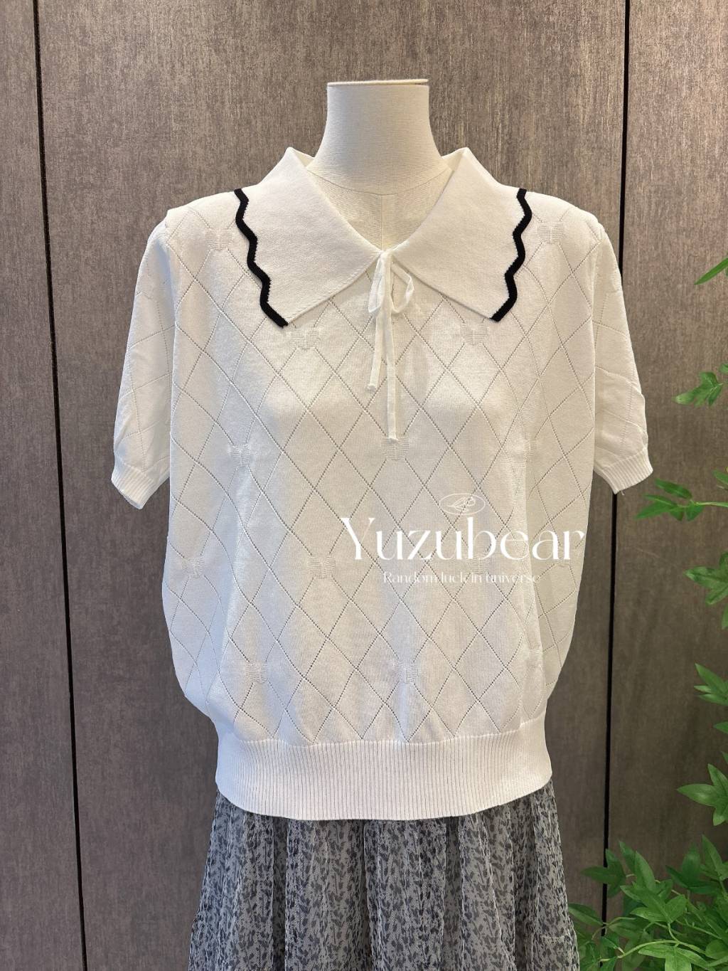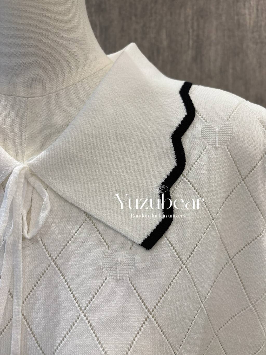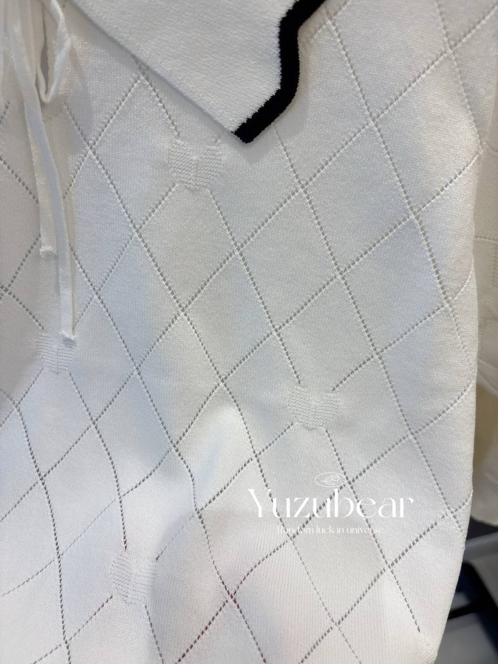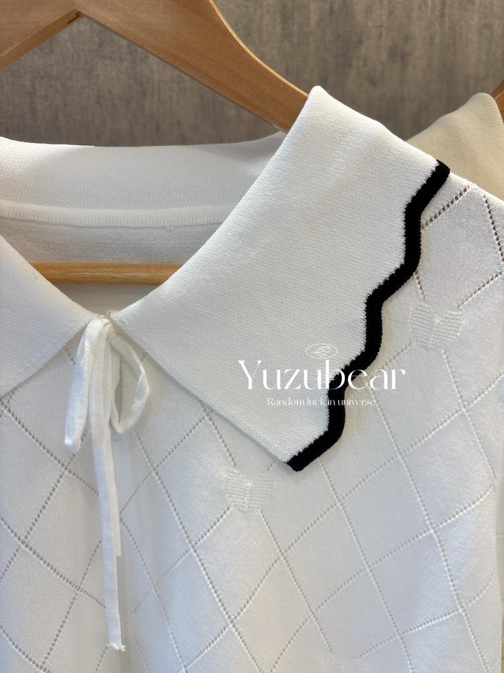 SS79 韓國高質波浪邊翻領暗心心格子紋針織衫
