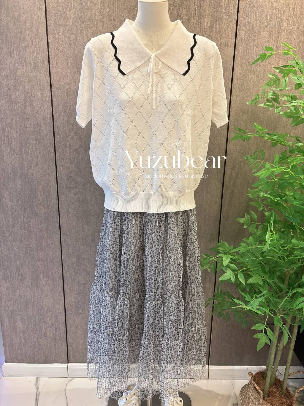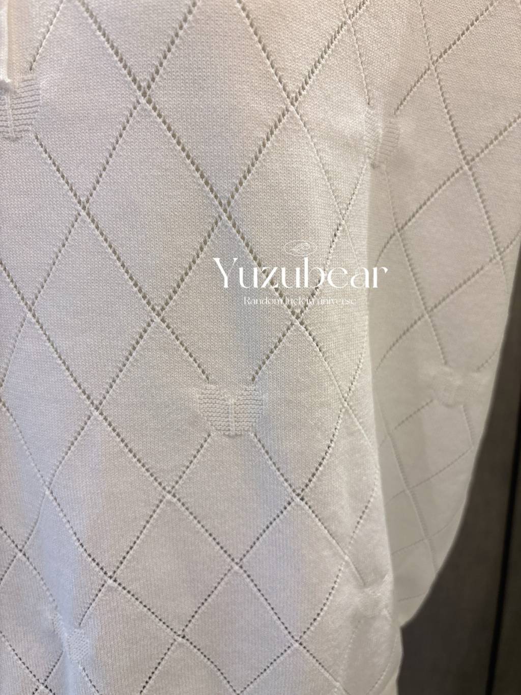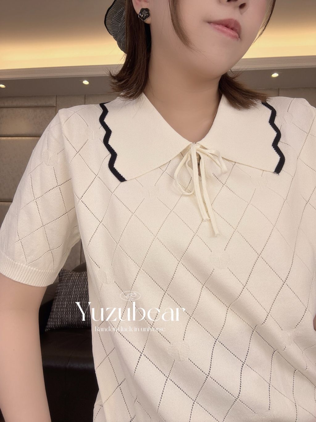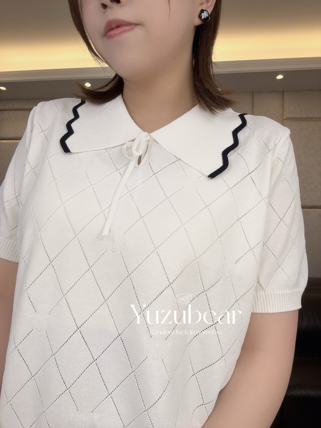 SS79 韓國高質波浪邊翻領暗心心格子紋針織衫