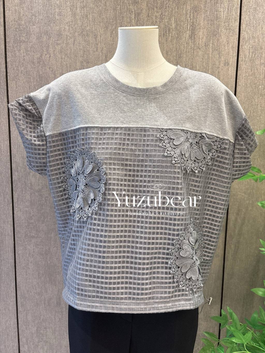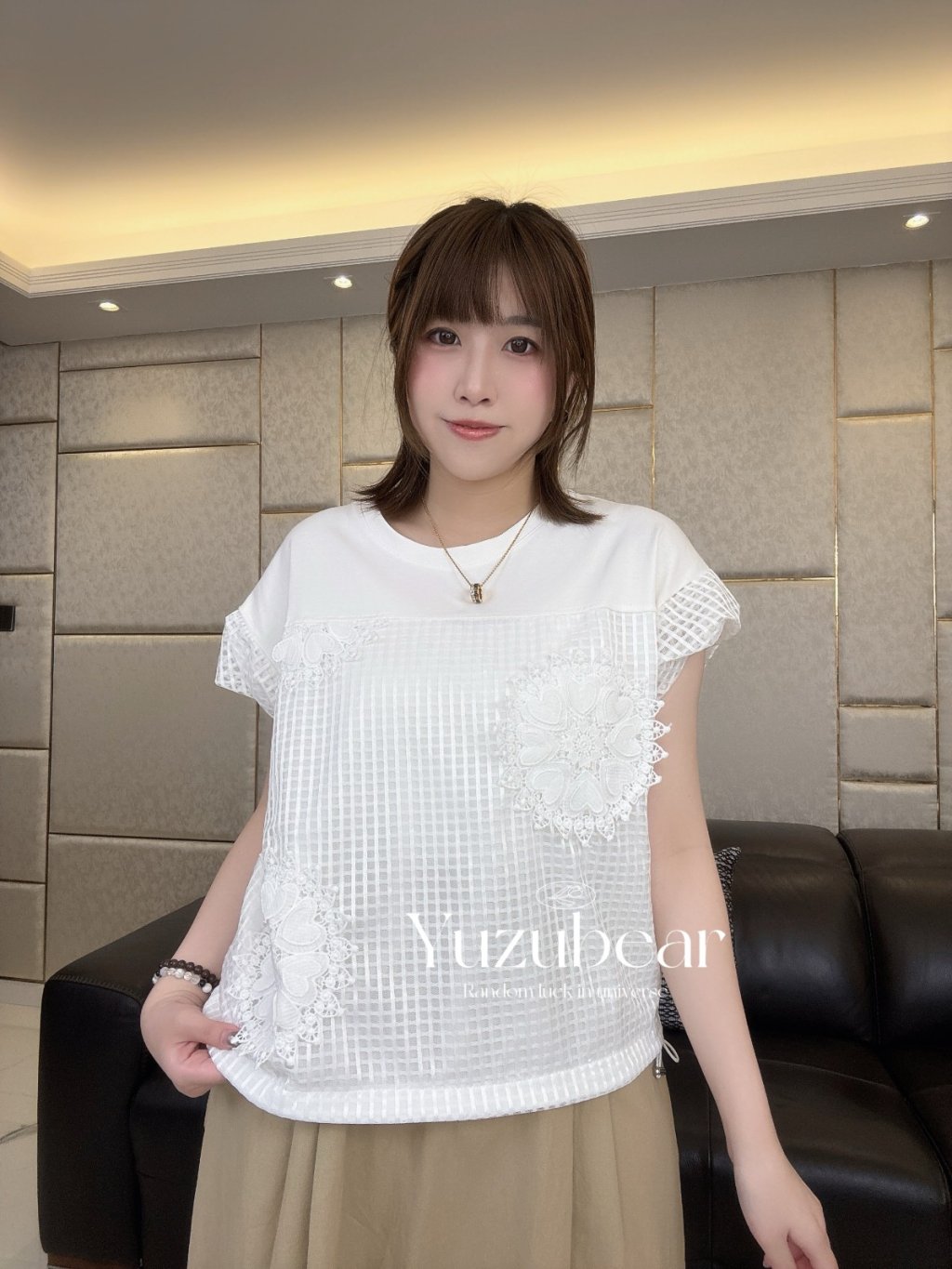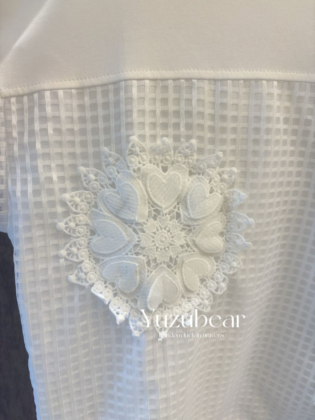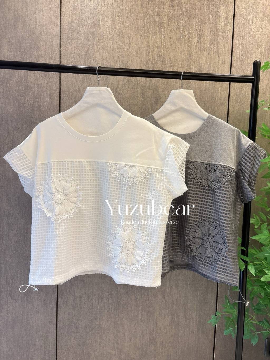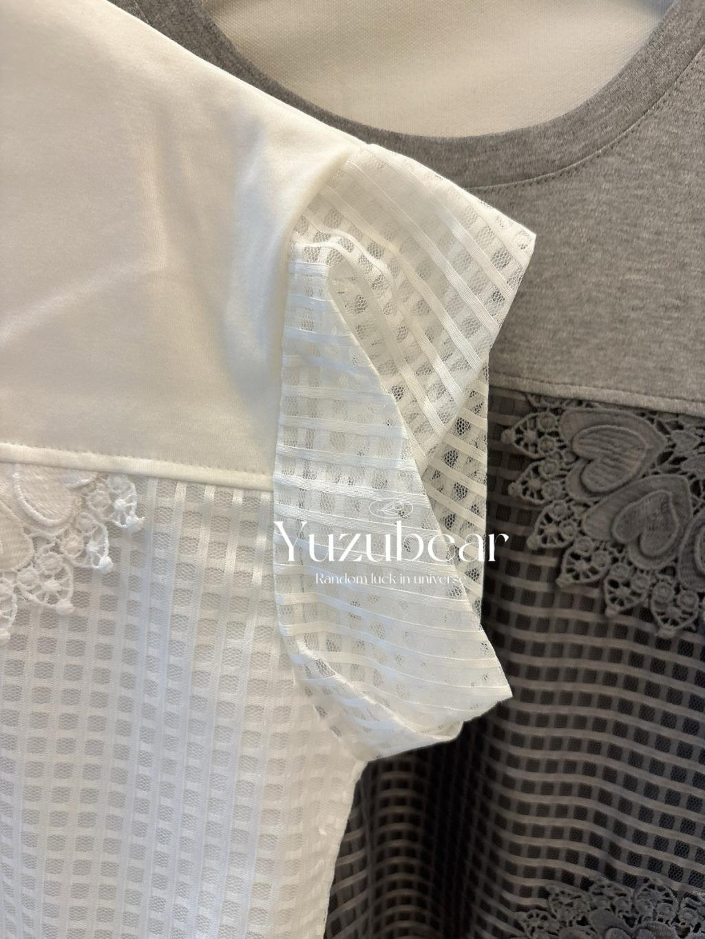 SS83 韓國高質窩夫格紋心心刺綉可束脚blouse