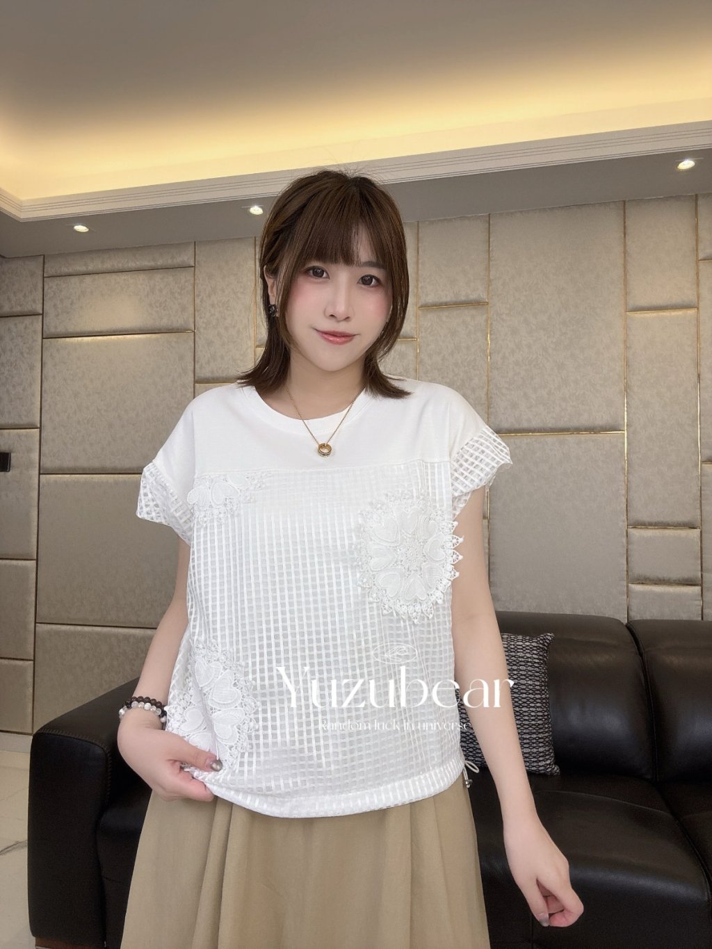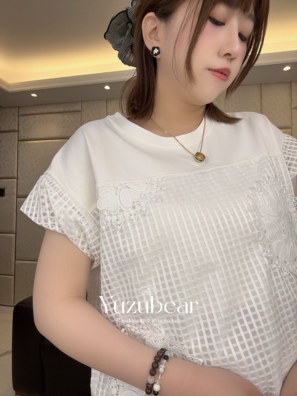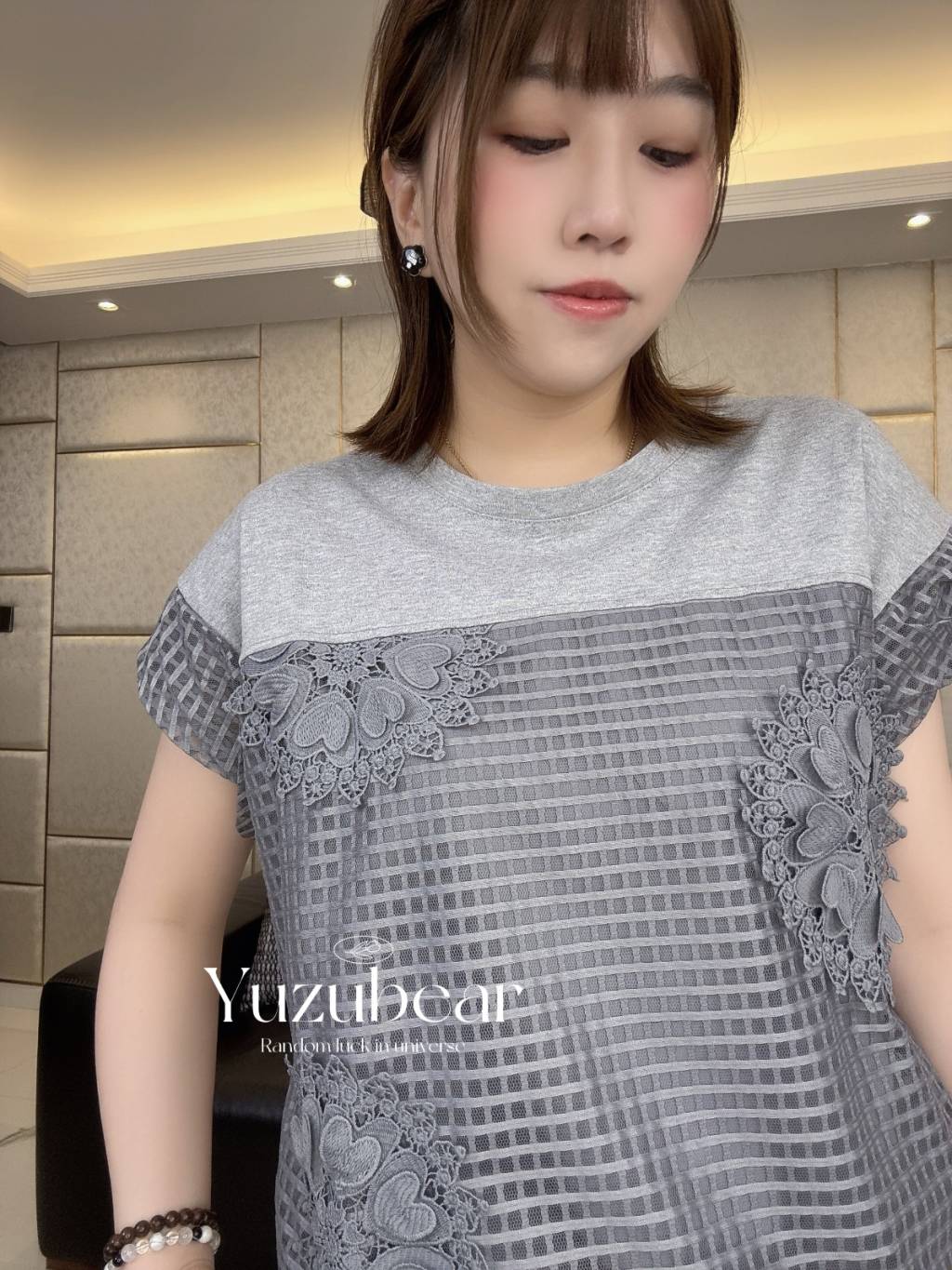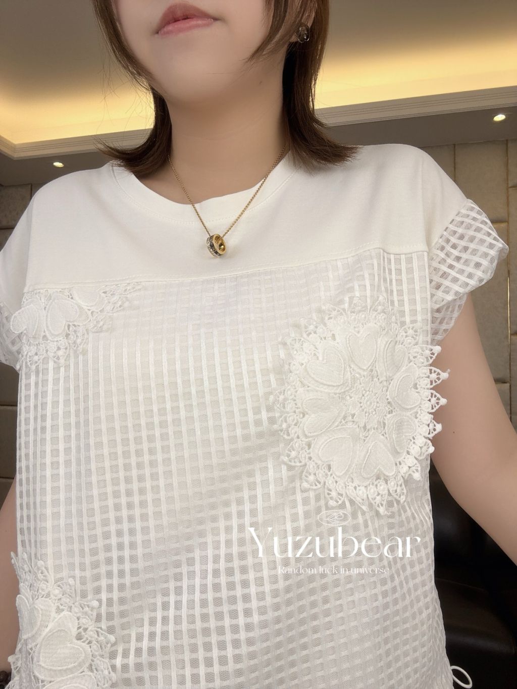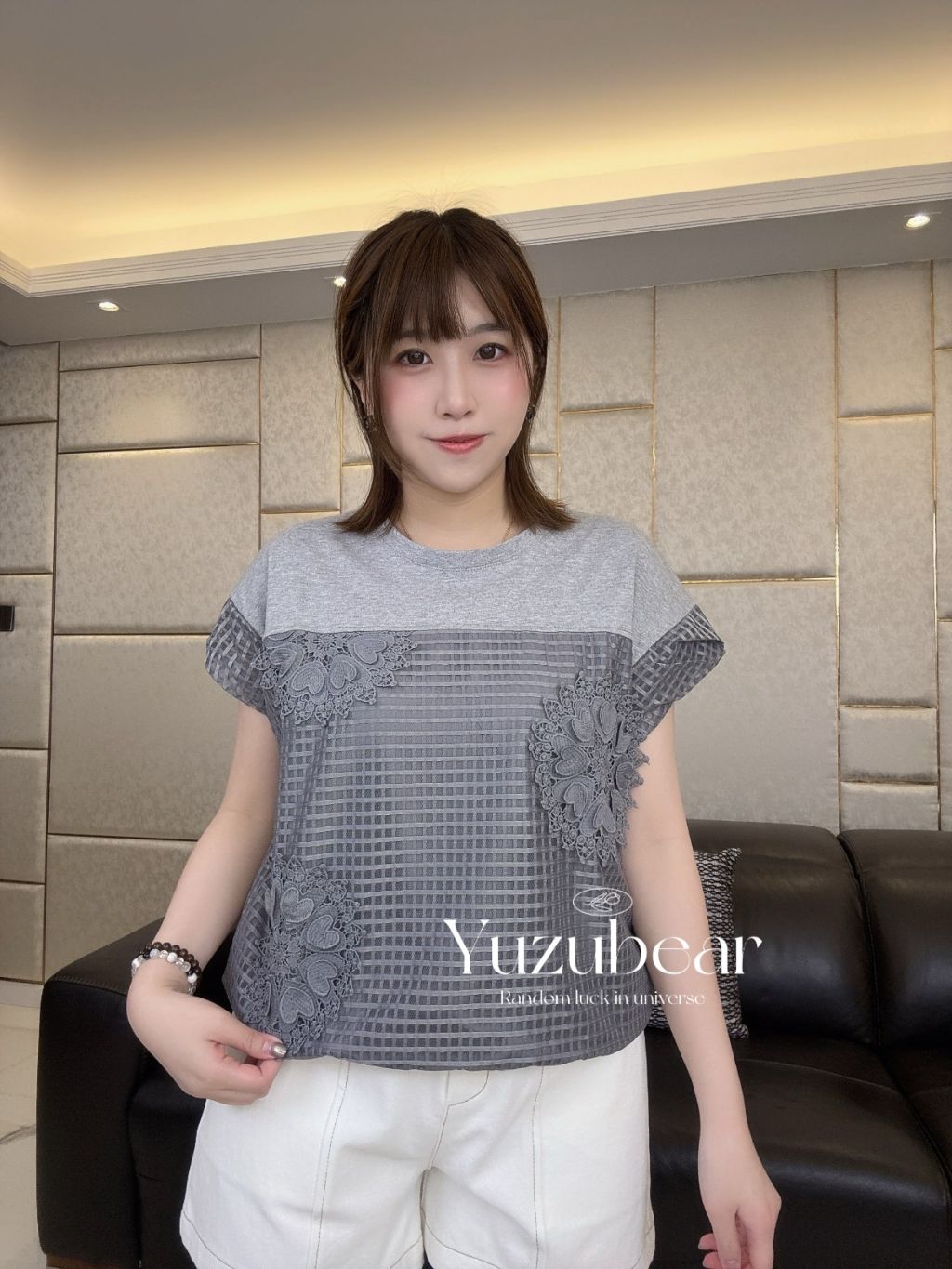 SS83 韓國高質窩夫格紋心心刺綉可束脚blouse
