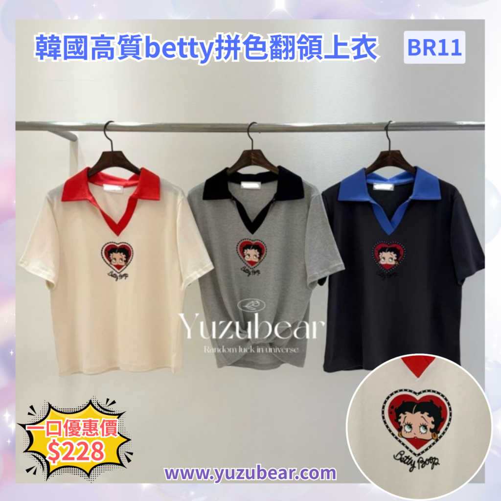 BR11 韓國高質betty拼色翻領上衣