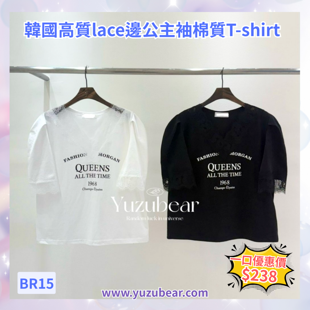 BR15 韓國高質lace邊公主袖棉質T-shirt